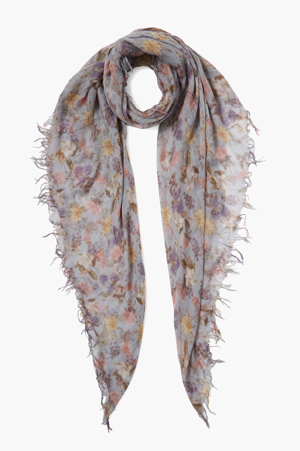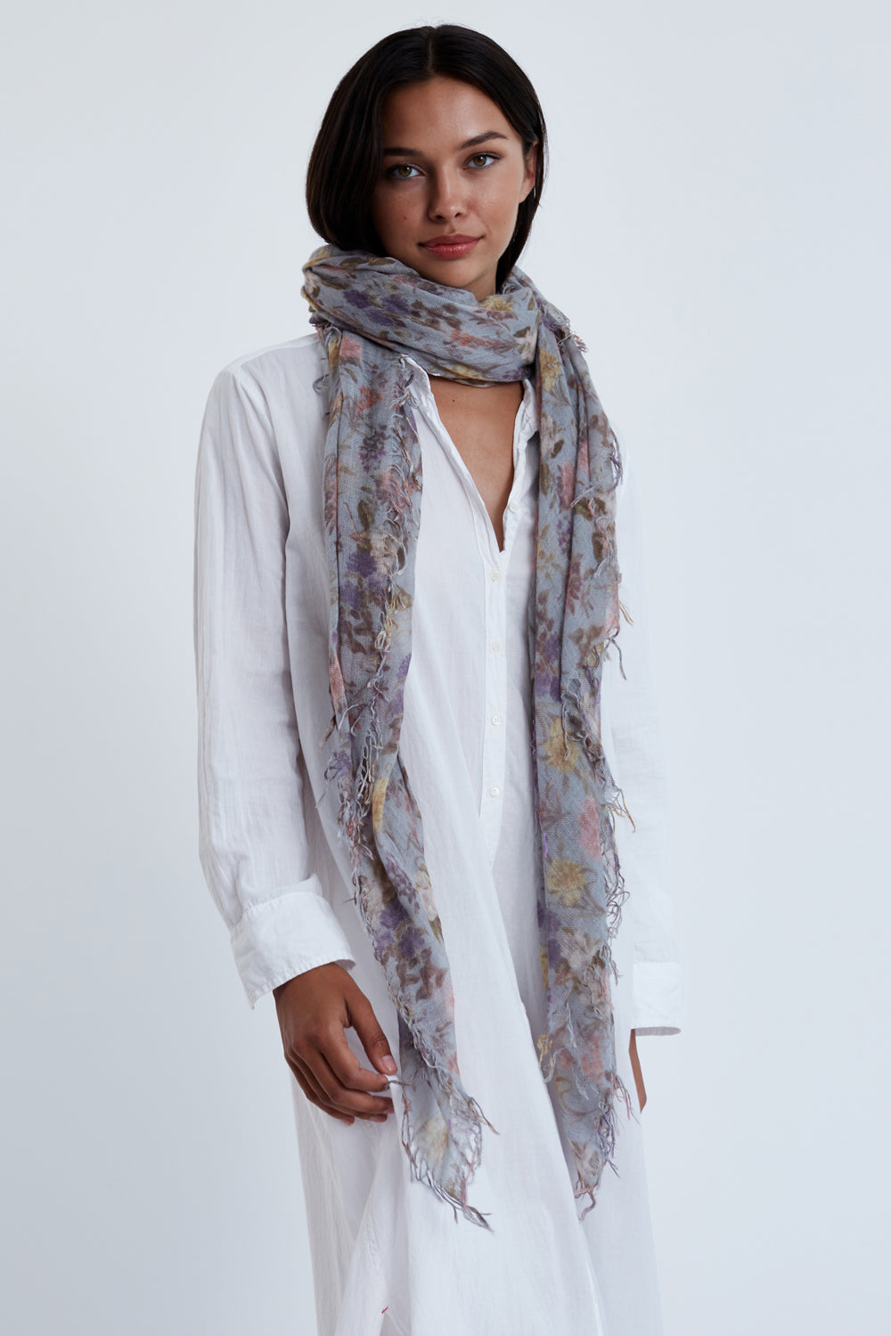 CASHMERE SILK FLORAL PRINT SCARF - PLEIN AIR