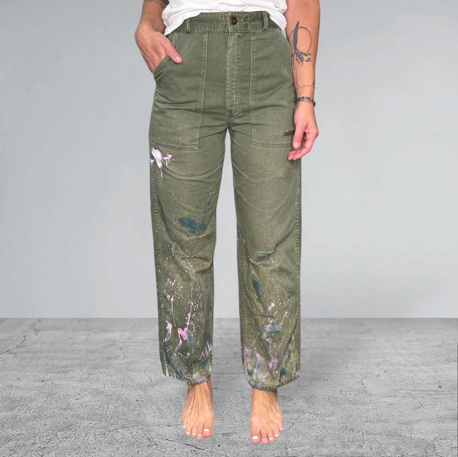 Every piece begins as a blank canvas. From denim and military jackets to painter pants and flannels, each item carries a history before it even reaches our hands. Kelly and Lo transform these finds with paint, bleach, splatters, and distressing—layering on character, texture, and story. No two are alike. Each jacket, shirt, or pair of jeans is reimagined into wearable art, made to live a whole new chapter with you.