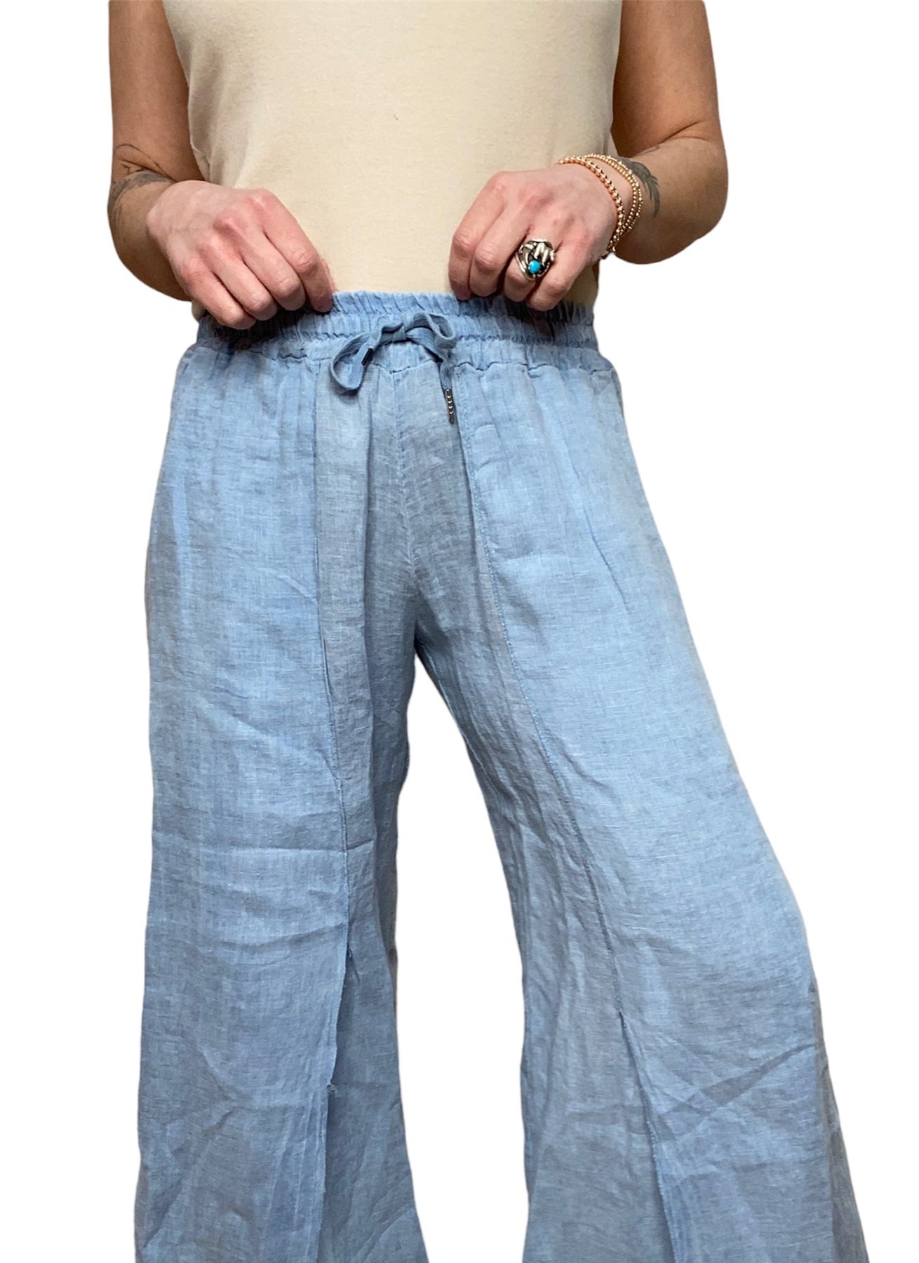 LINEN SPLIT LEG PANT - DENIM - Kingfisher Road - Online Boutique