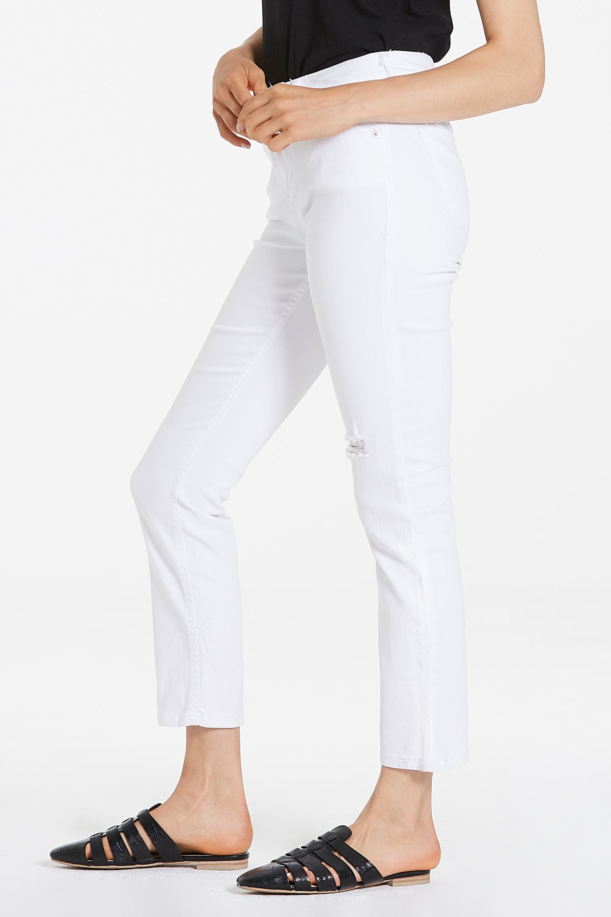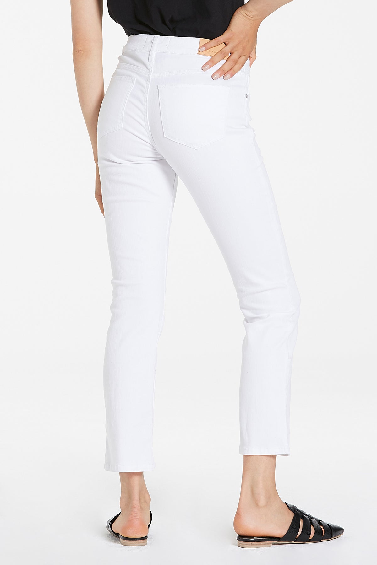 Slim Straight leg finish with high rise by Dear John denim. It's the outstanding fit that sits slightly lower on the waist and fitted slender from the hip to mid thigh. Ankle inseam on comfort stretch denim in bright optic white finish.9 1/2" Front Rise (include waistband), 13 1/2" Leg Opening, 28" inseam (on Model size 27)