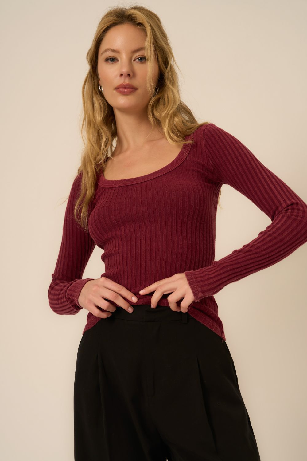 WHAT'S THE SCOOP WASHED RIB LONGSLEEVE-MW SANGRIA