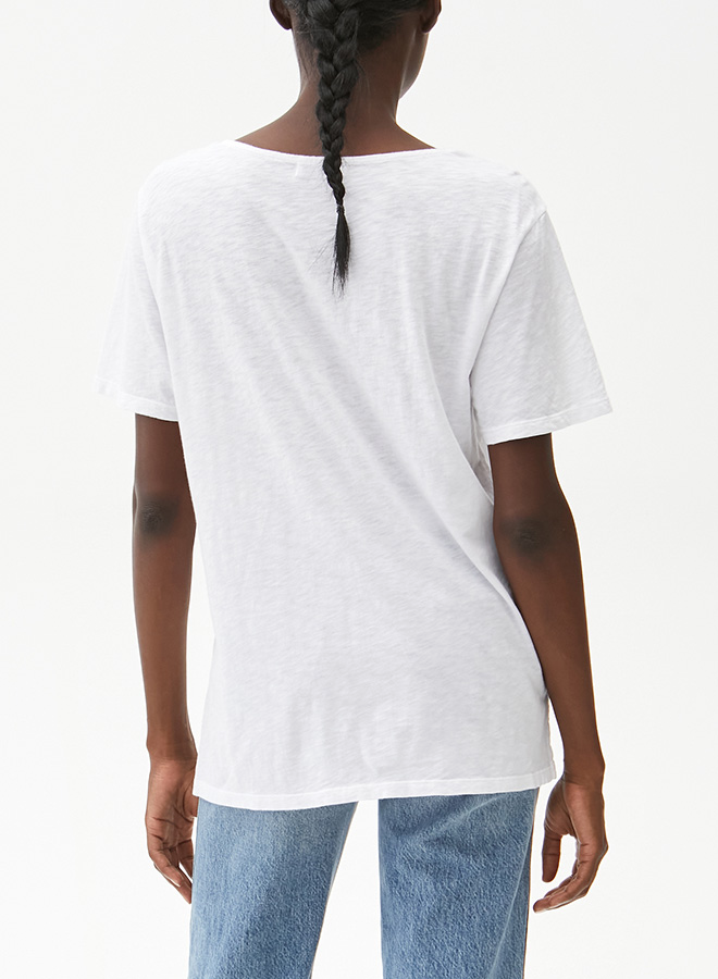 Made from our best-selling SUPIMA cotton slub, our Arina v-neck has an oversized, easy-to-wear fit and is sweetly trimmed with a touch of lace.