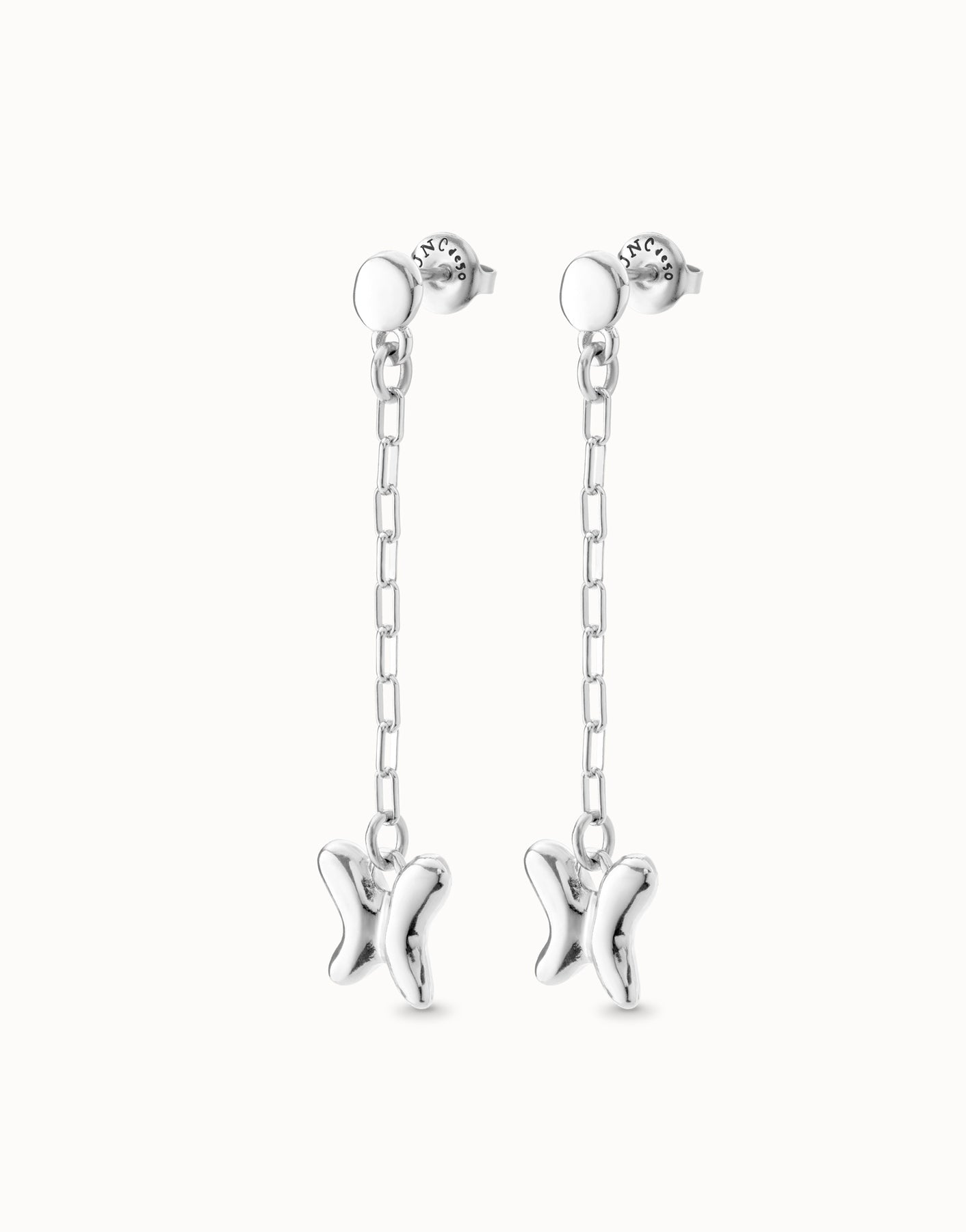Inspired by elements of nature always present in UNOde50’s history, the Free collection includes jewelry such as these earrings composed of a dangling chain of small links with a dangling butterfly.