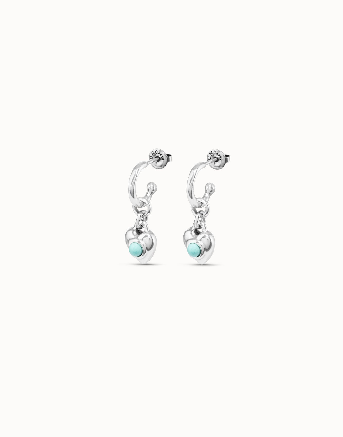 These earrings have a heart design, attached to the main hoop through a small ring and featuring a Murano glass in the center. Jewelry handmade in Spain. Get them now and wear them every day. The Protected collection portrays ancestral objects, which become amulets to bring luck or are a protection against negativity. Jewelry that you will want to wear wherever you go.