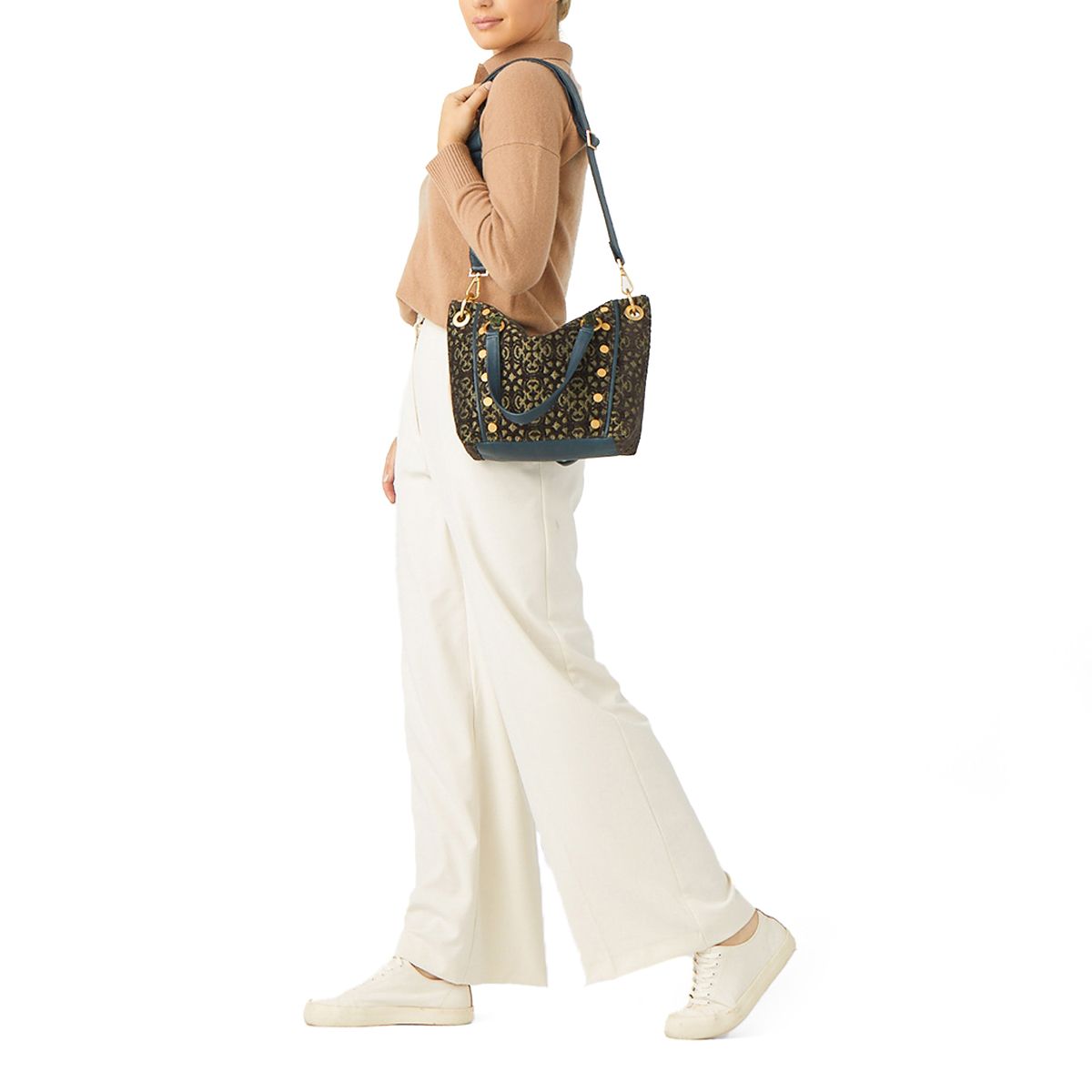 • Top handles and removable, adjustable crossbody strap