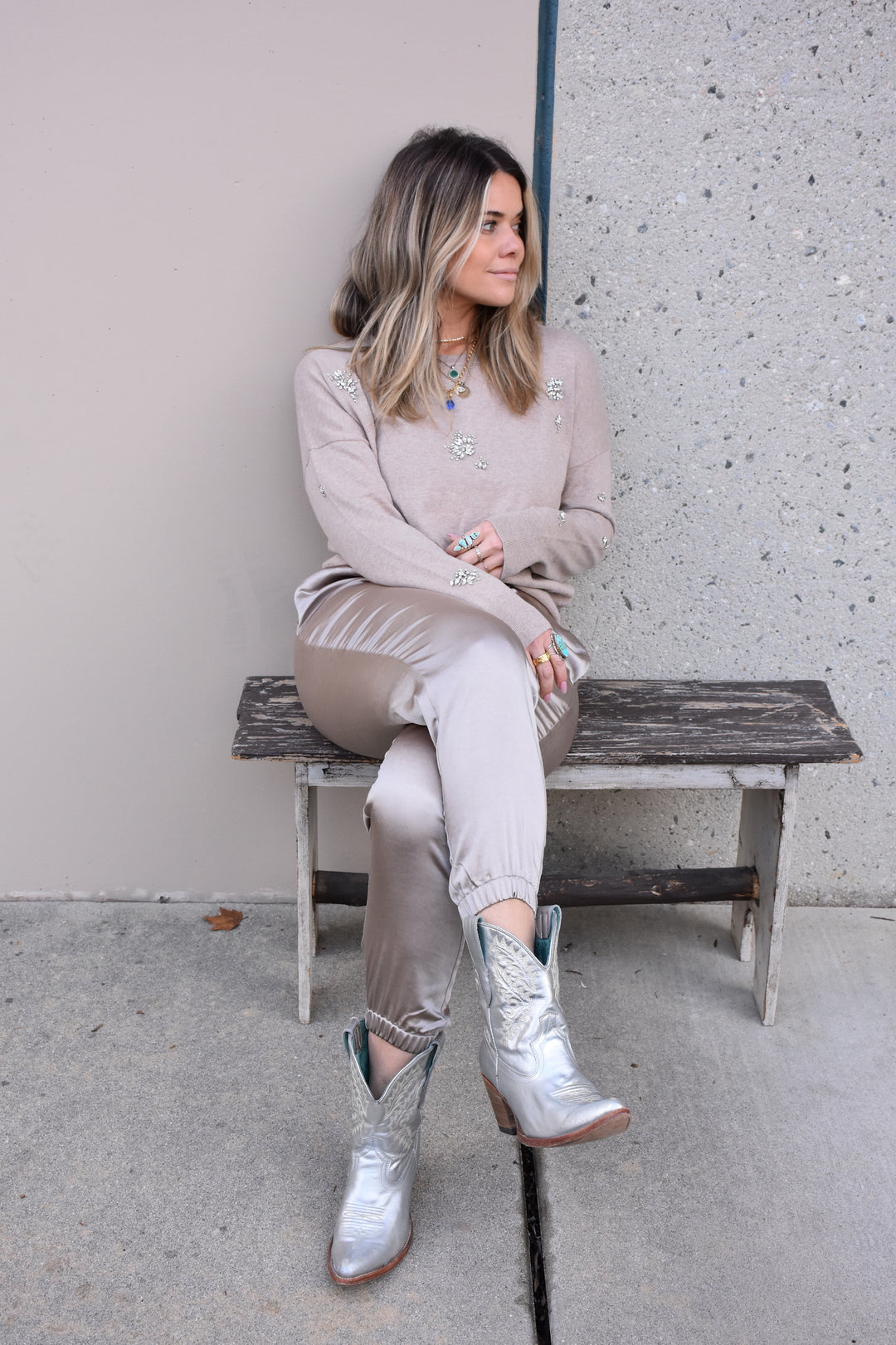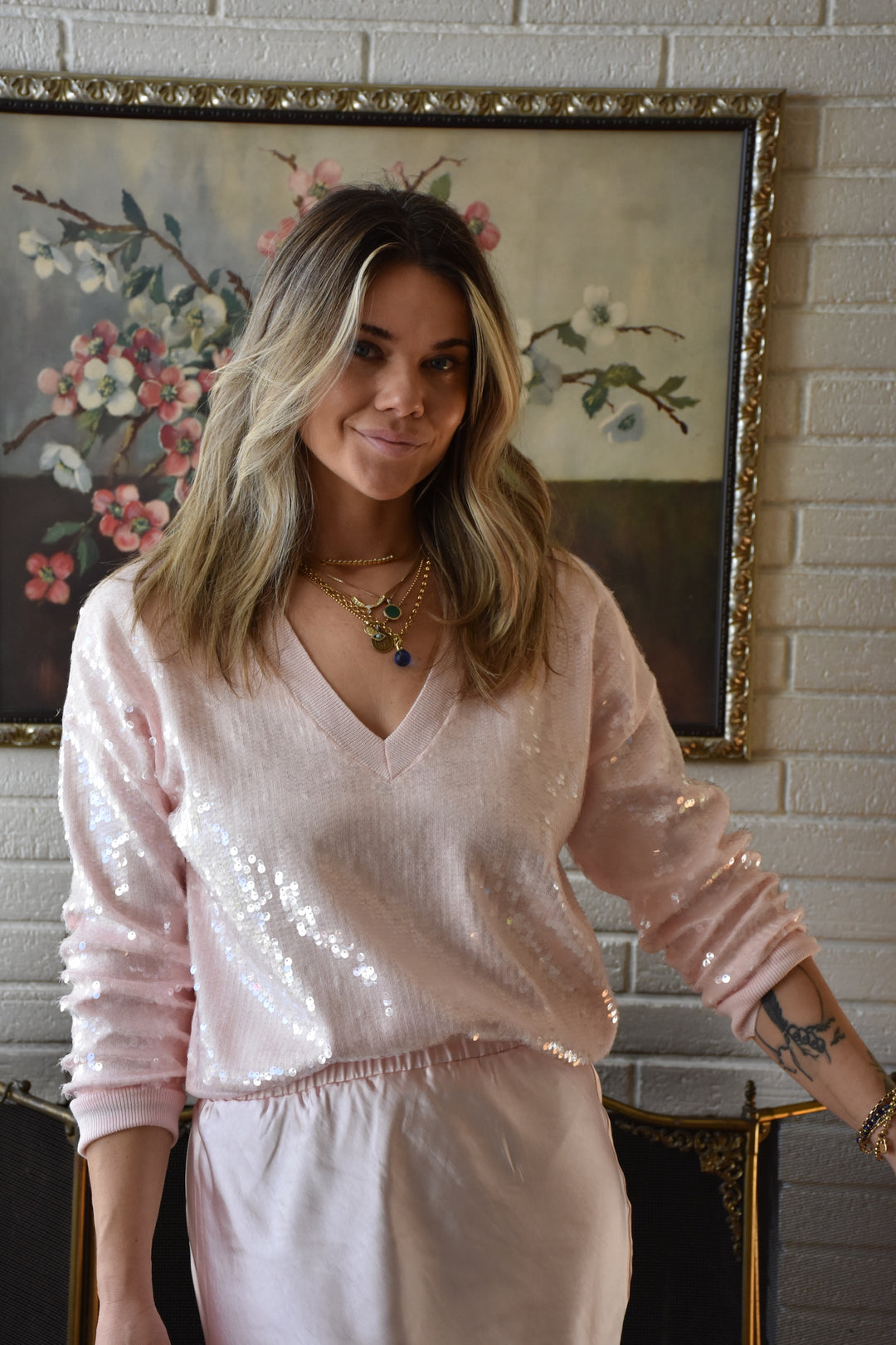 EMBELLISHED CREW NECK SWEATER-BLUSH