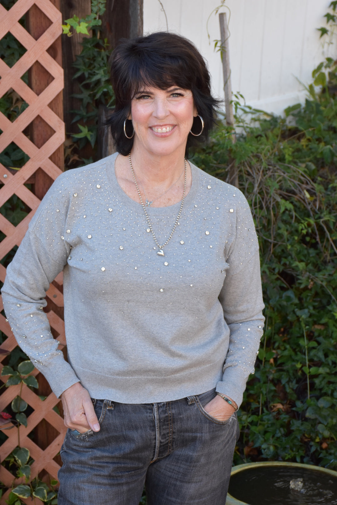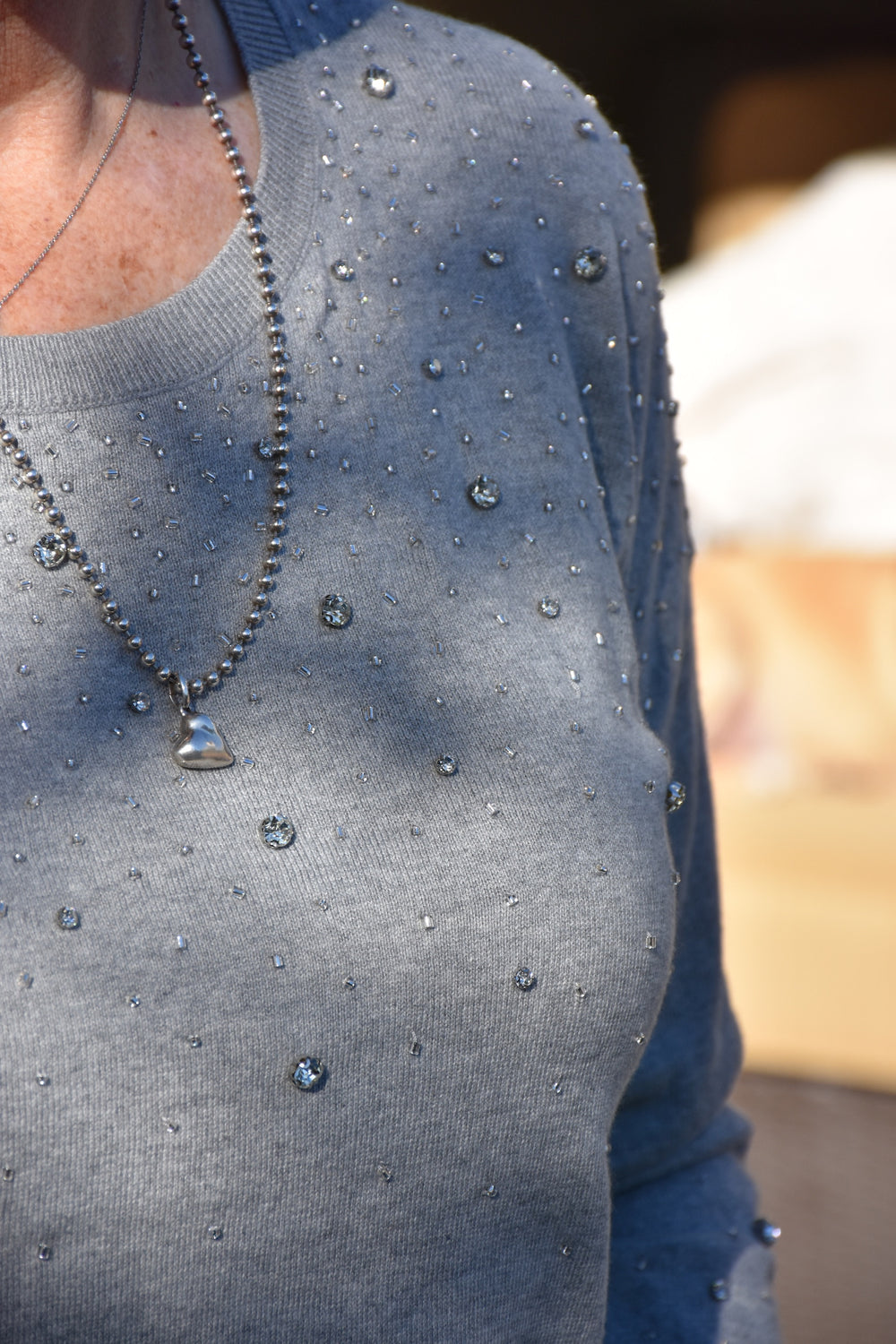 EMBELLISHED CREW NECK SWEATER-HEATHER GREY