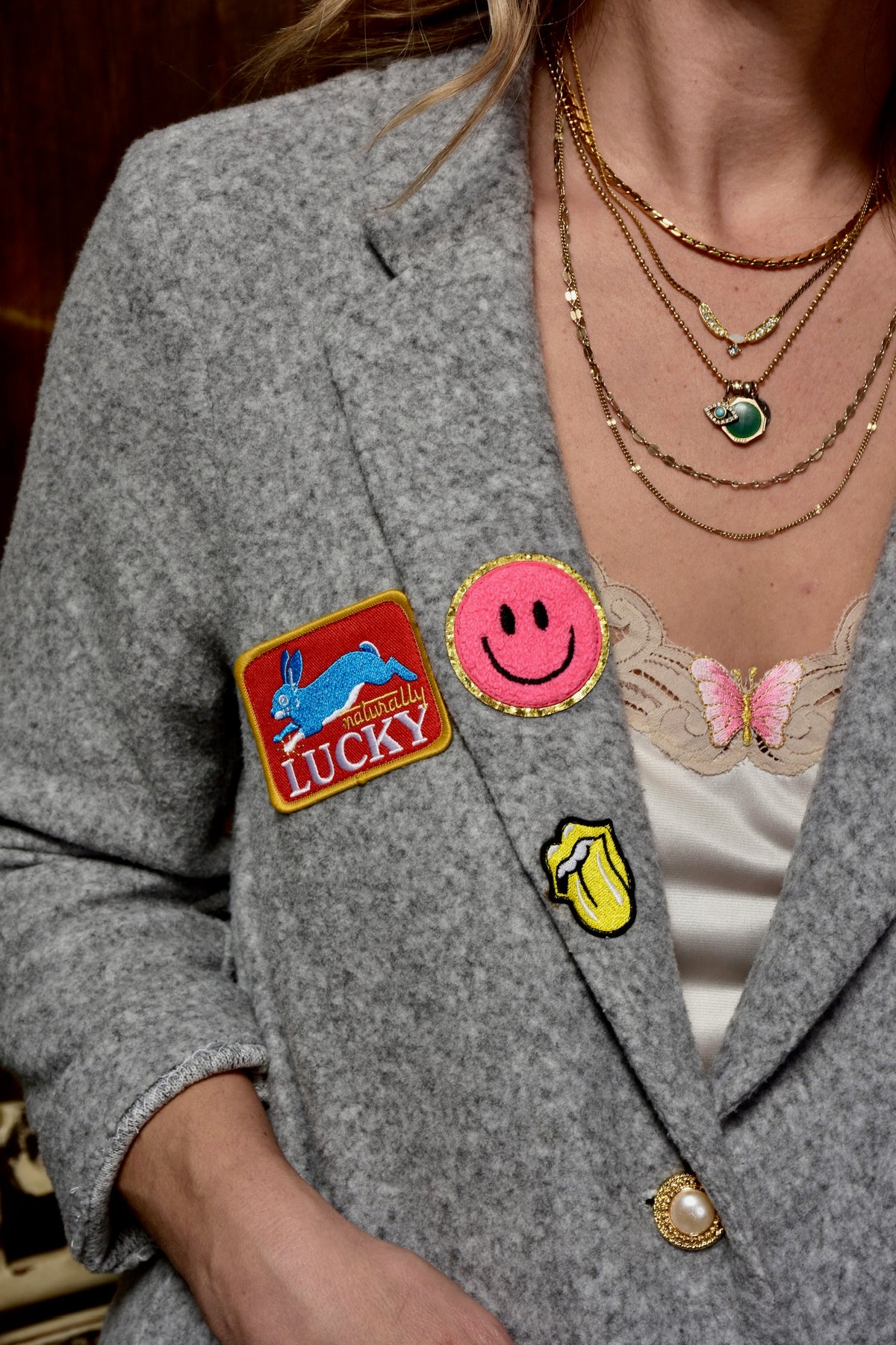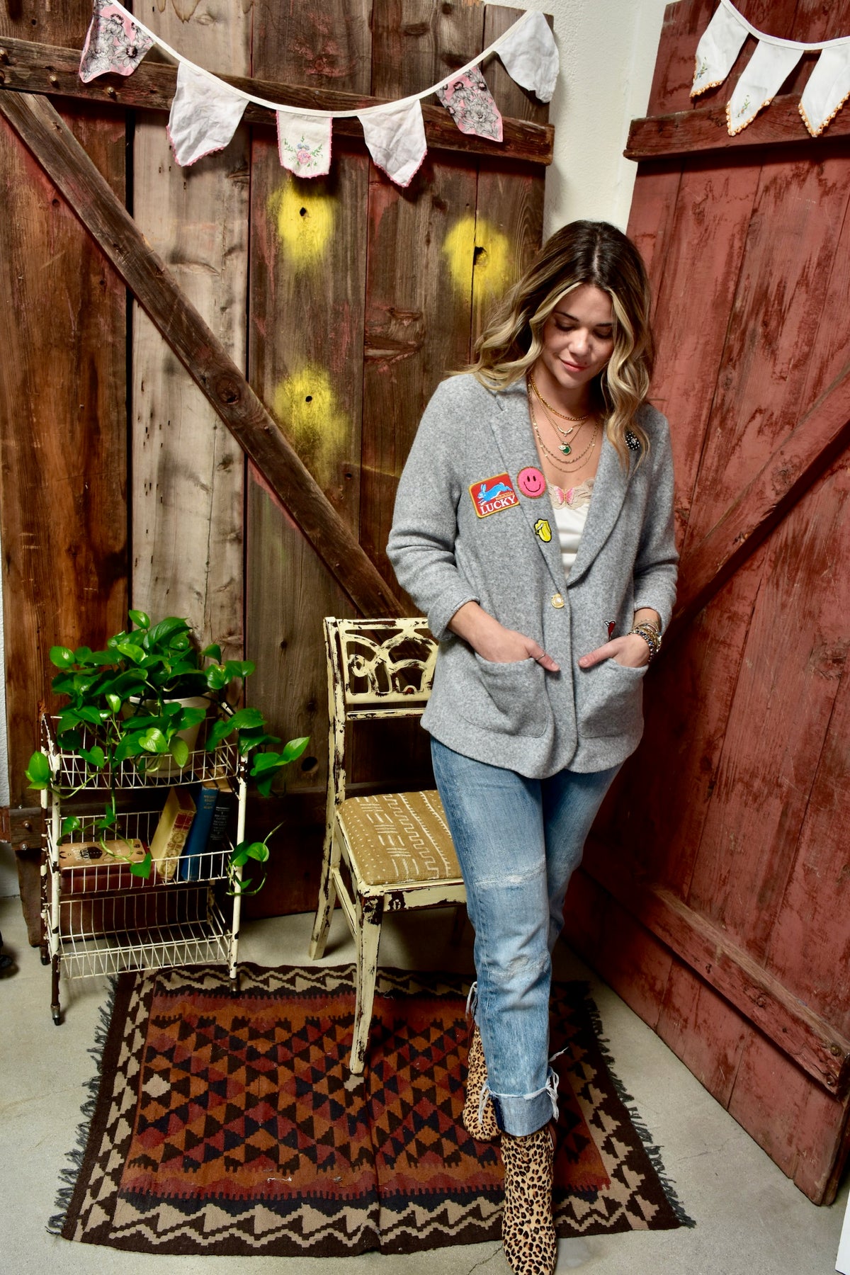 Each blazer is given new life by Kelly & Lo with hand-selected patches, buttons or embroidery, making every style truly unique.