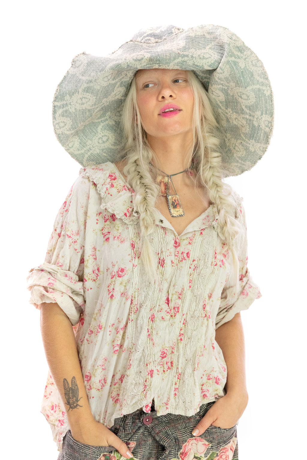European Cotton Ana Lucia Layering Blouse with Hand Fading and Distressing .