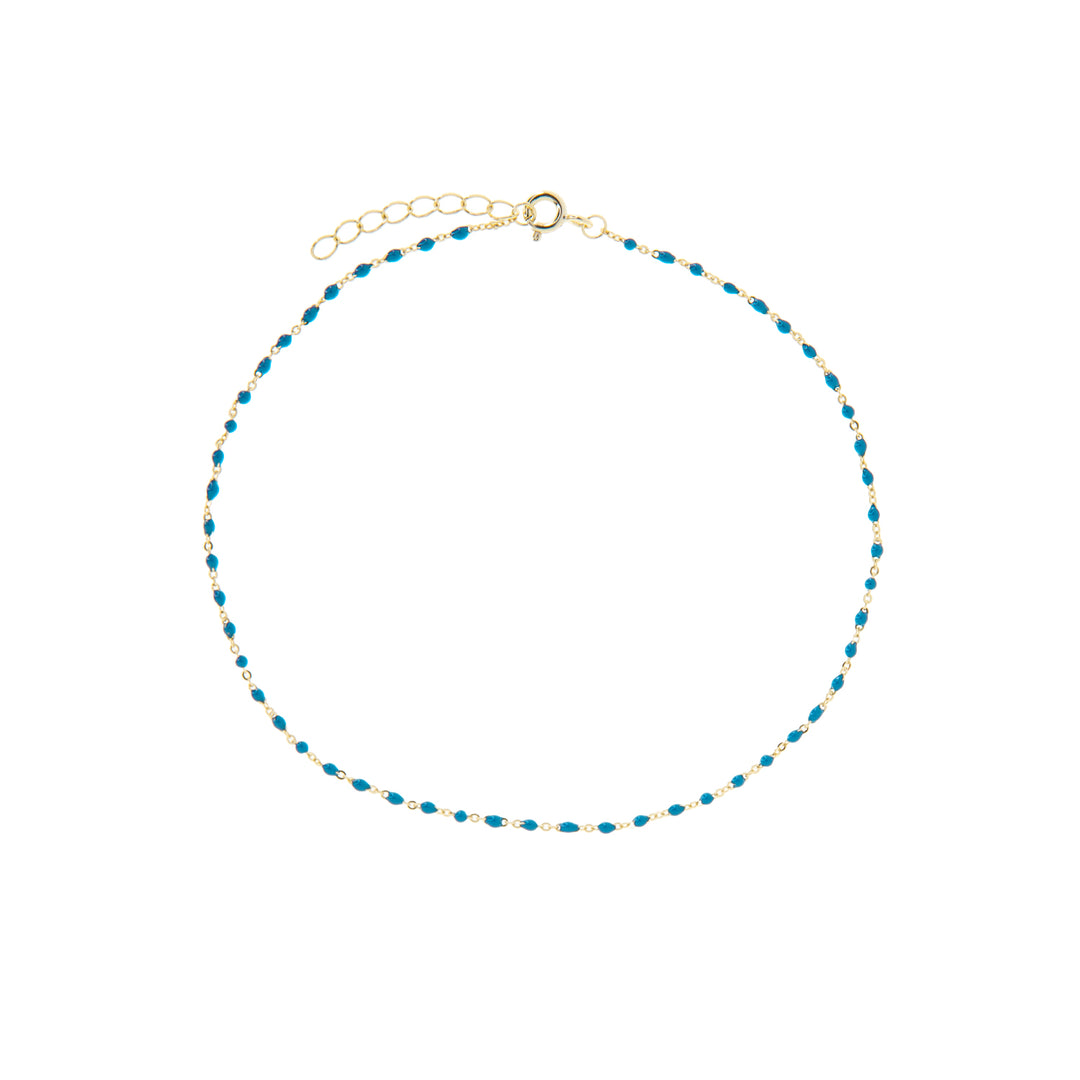 Our delicate beaded gold plated anklet is perfect on its own or layered with multiple colors.