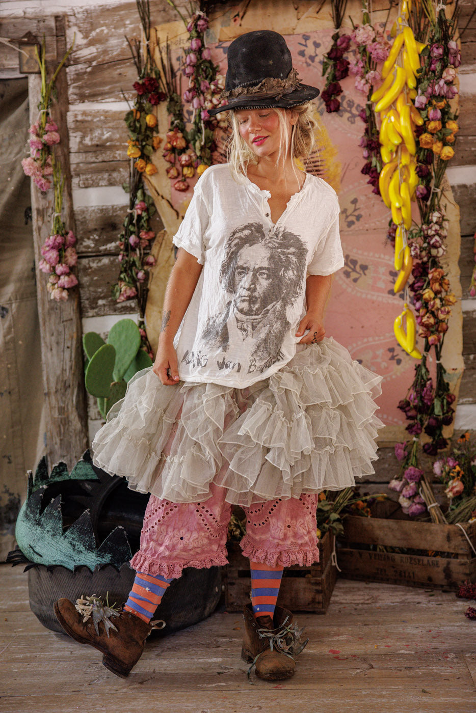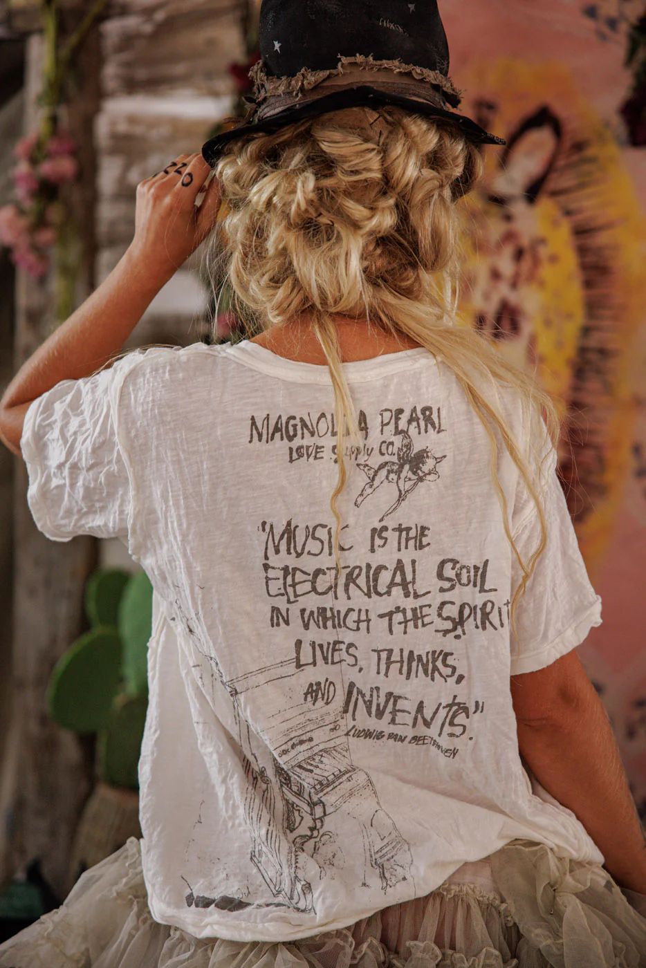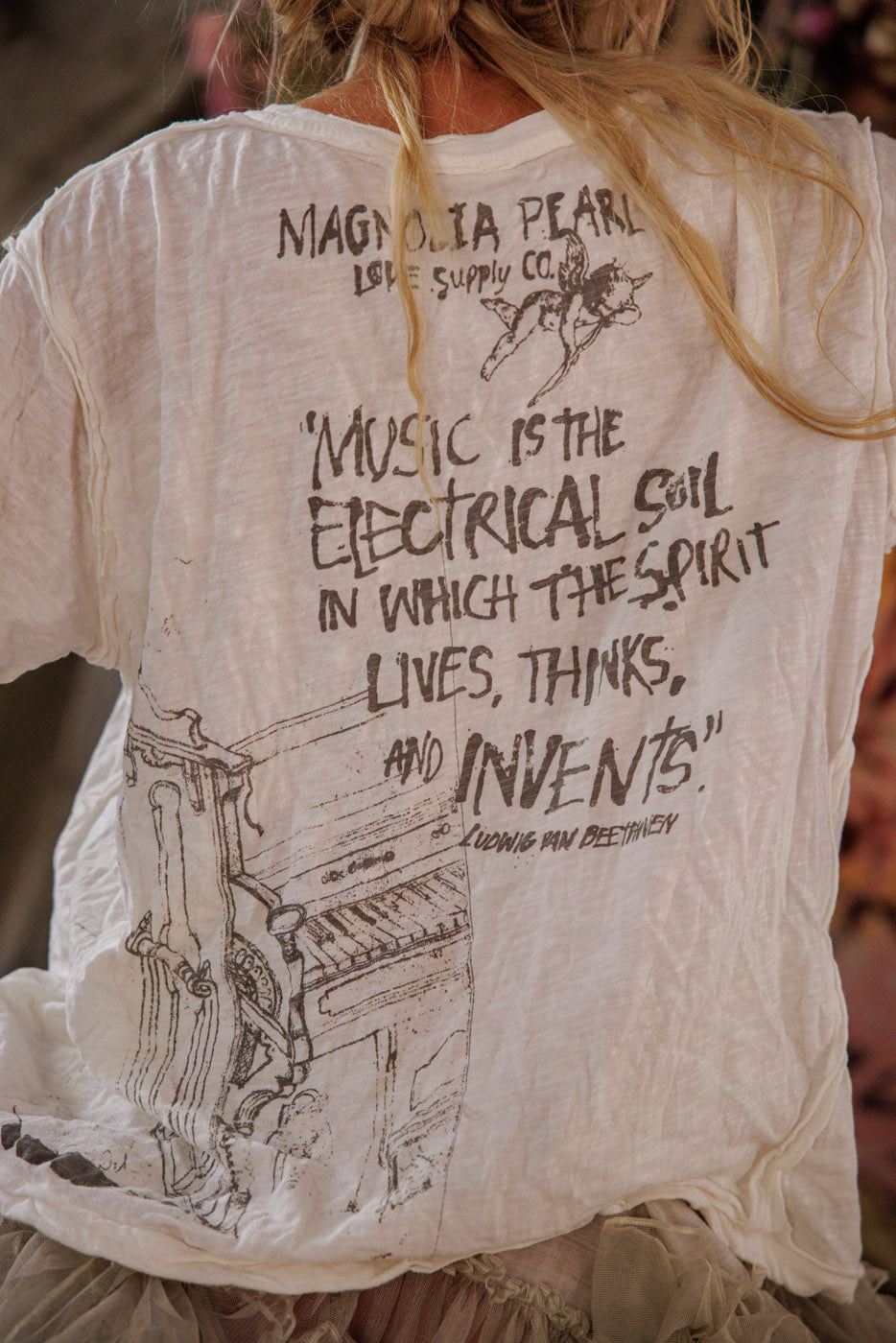 The gratitude and awe in the wake of such wonder is woven into each Magnolia Pearl garment, clothing intended to grace the vastness of the human expression, with an eye to sustainability and ease of movement. Magnolia Pearl's aim is to attire all with a sense of integrity and lightness, resilience and bewilderment.