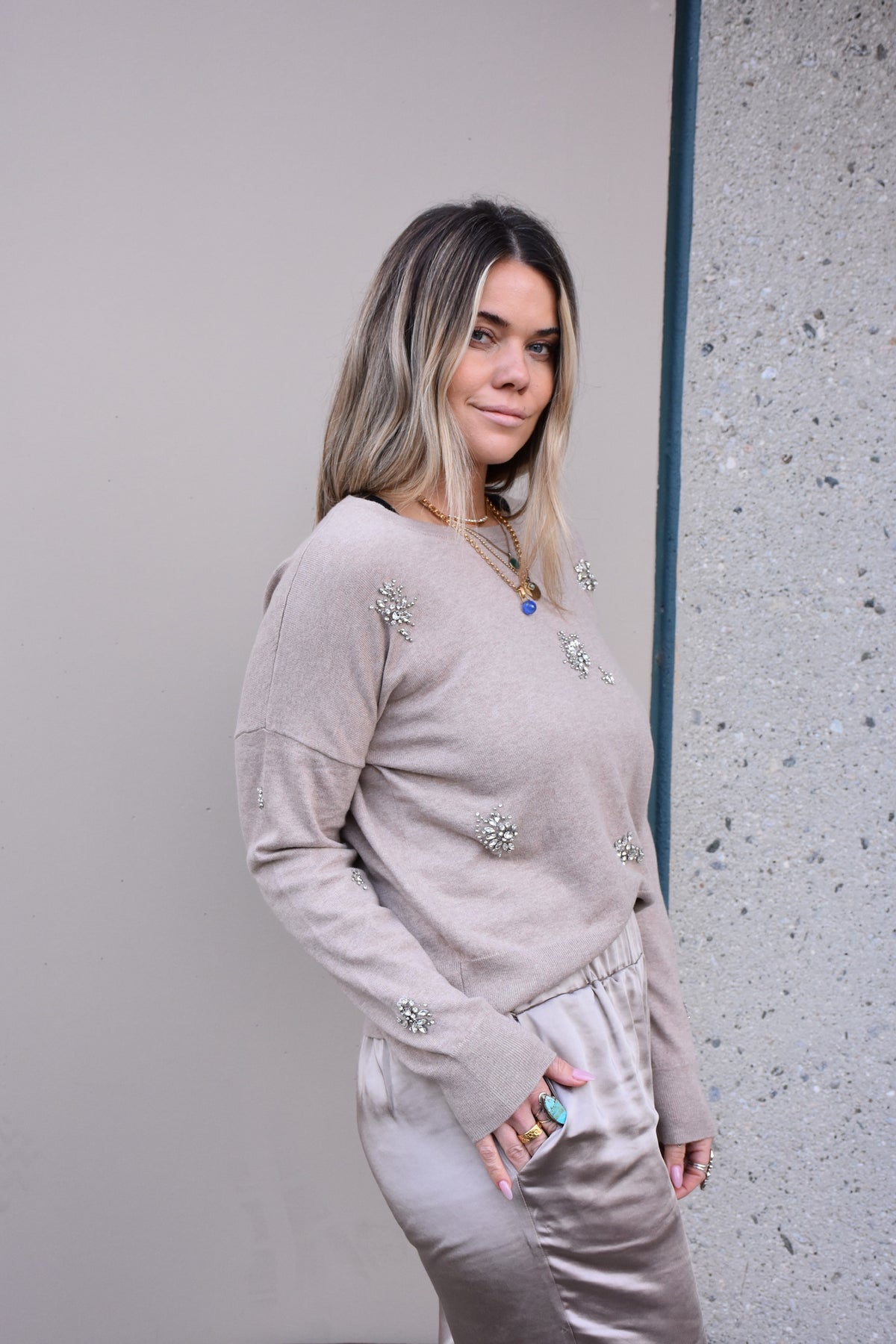 BROOCH CREW NECK SWEATER-CAPPUCCINO