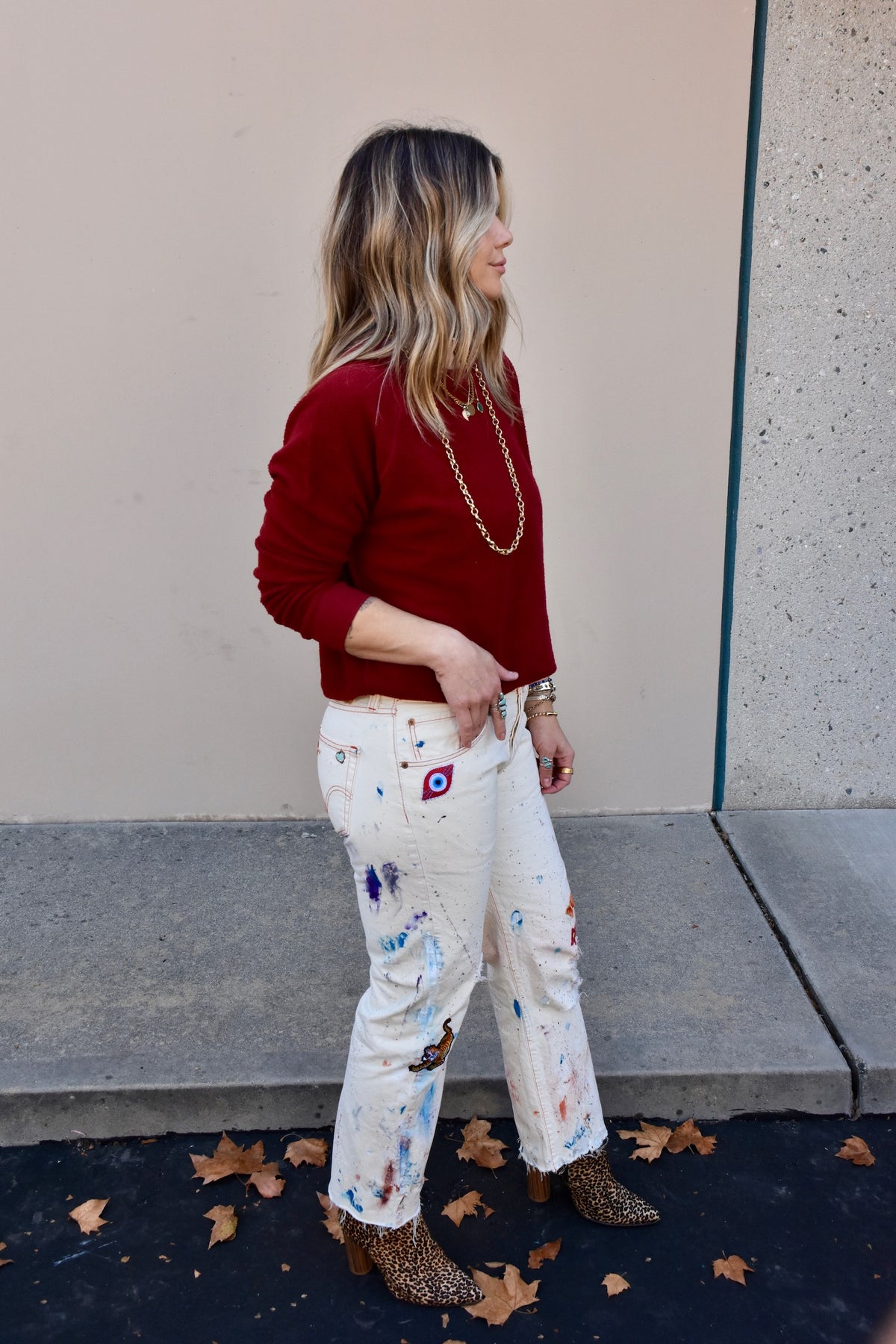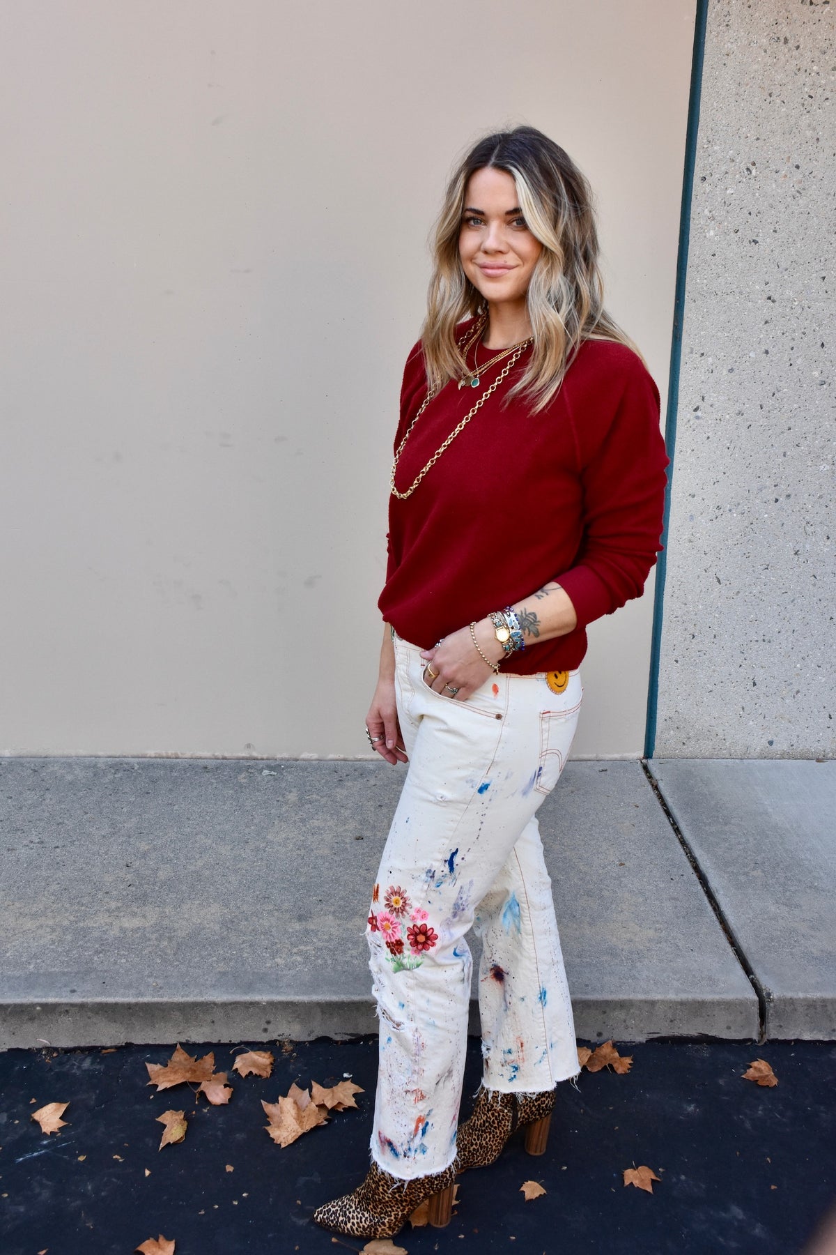 Every piece begins as a blank canvas. From denim and military jackets to painter pants and flannels, each item carries a history before it even reaches our hands. Kelly and Lo transform these finds with paint, bleach, splatters, and distressing—layering on character, texture, and story. No two are alike. Each jacket, shirt, or pair of jeans is reimagined into wearable art, made to live a whole new chapter with you.