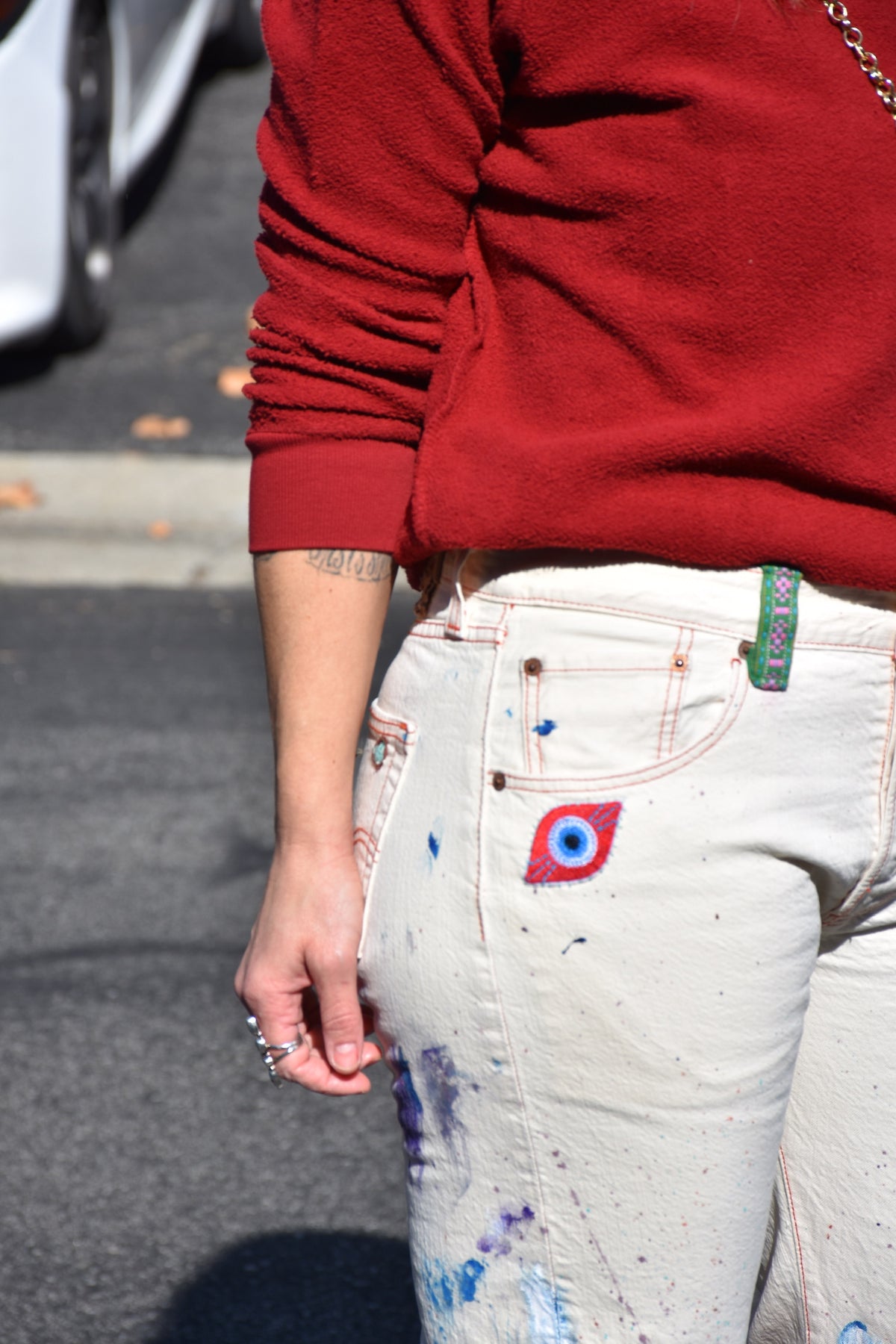 Should you need to wash your denim, we suggest cold water and if there is paint splatter either hang to dry or on a low setting for the dryer.