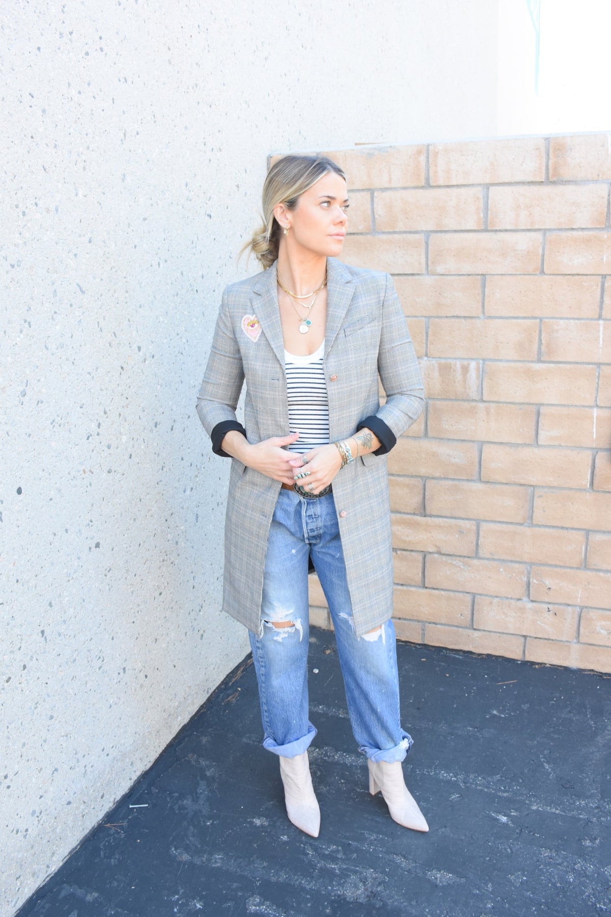Each blazer is given new life by Kelly & Lo with hand-selected patches, buttons or embroidery, making every style truly unique.