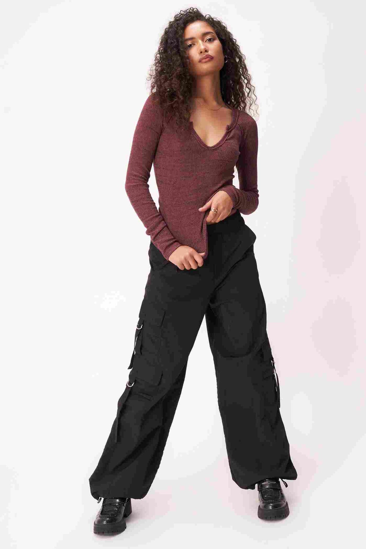 Haleigh Notch Neck Marled Rib Longsleeve made of a lightweight rib fabric with a fitted silhouette, notch neckline, raw edge seaming details, and a curved hemline, it's the perfect blend of flattering yet comfortable. From dressed up with leather pants and heels to styled casually with jeans and sneakers, it's your newest style staple.