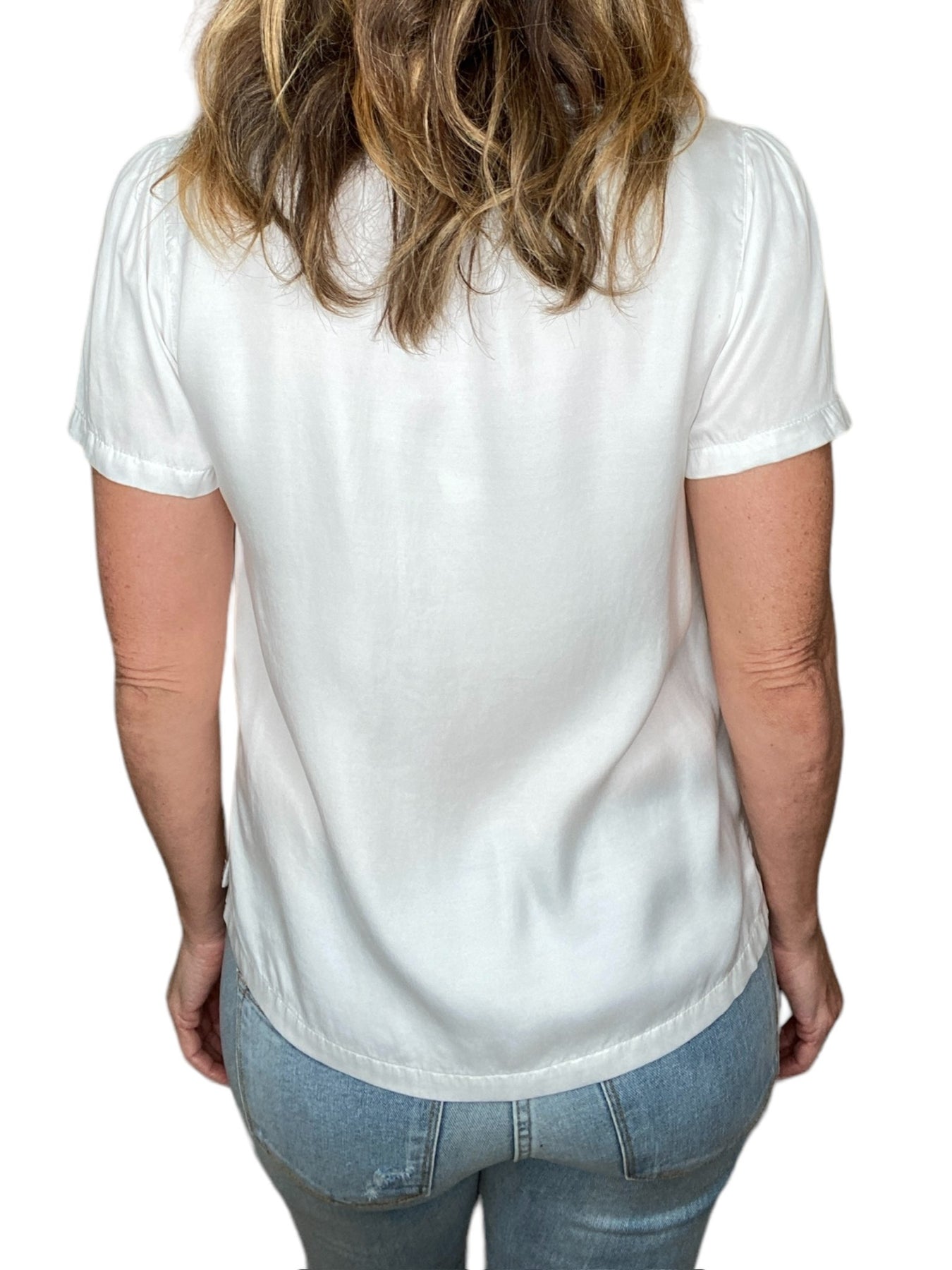 SHORT SLEEVE V NECK TOP-OPTIC WHITE - Kingfisher Road - Online Boutique