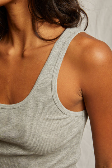 MIA FINE VARIEGATED RIB HEATHER TANK-HEATHER GREY