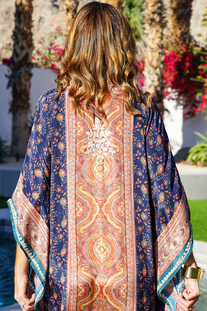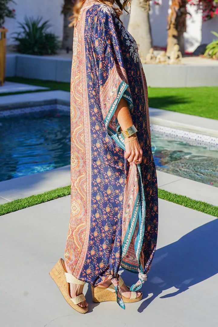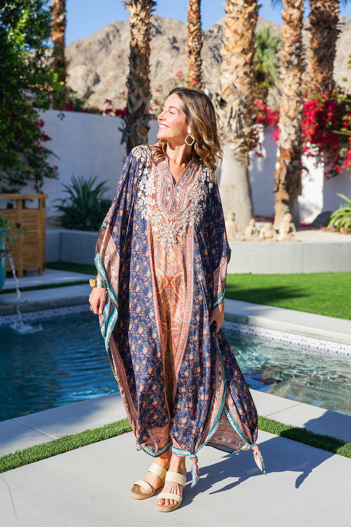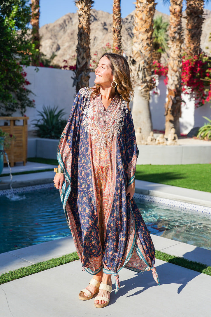 Discover the allure of Mumbai Mumu. This exquisite piece features intricate embroidery throughout the neckline and is crafted from a luxurious silk blend. Perfect for making a statement at any upscale resort or beachside event.