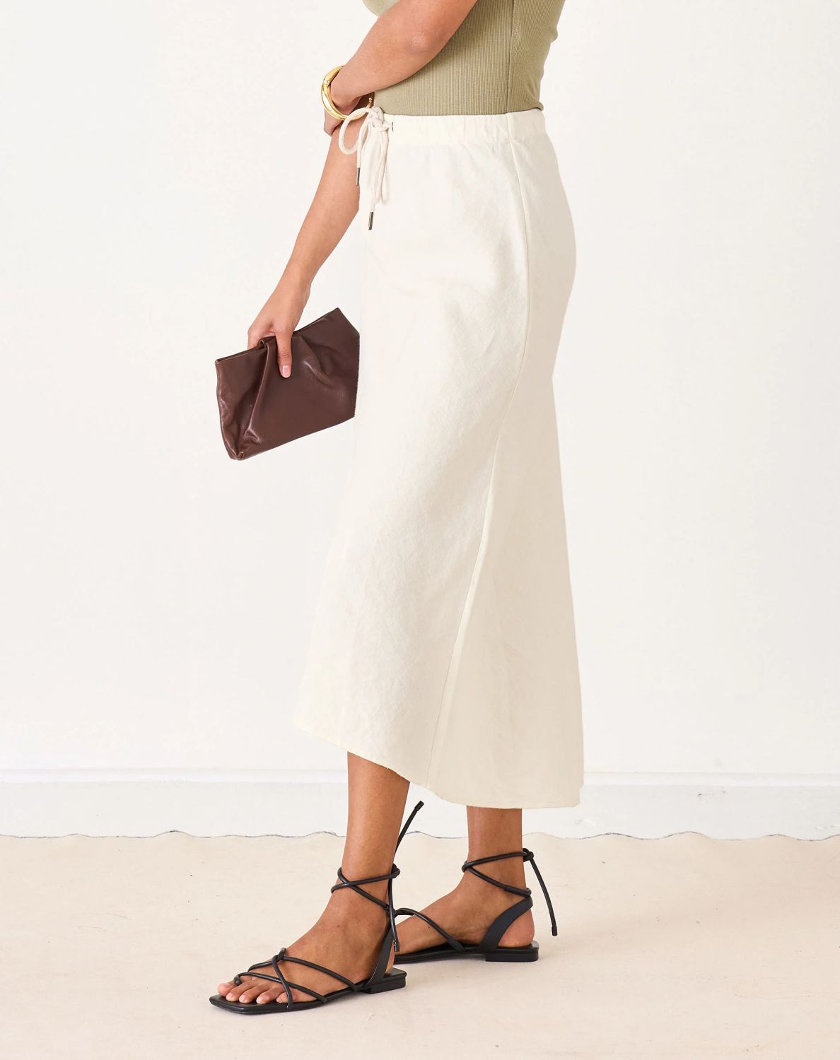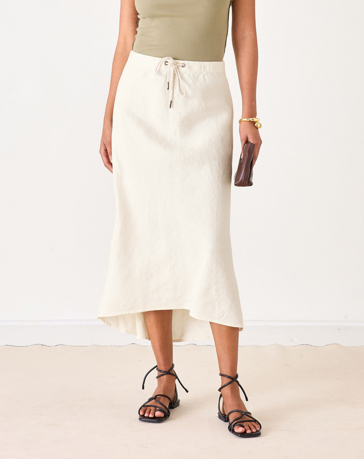 Made from the fibers of summertime—this 100% linen maxi skirt is inspired by hot days in the south of France. Whether you're heading to the market, out for dinner or to sit by the sea, the Aix Linen Maxi is lightweight, breathable and simply chic. The drawstring waist and high-low hem make this a flattering and easy-to-wear silhouette.