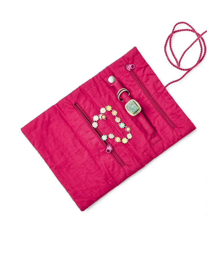 These delightful travel accessories are crafted from printed cotton fabric. The jewelry roll offers a convenient and stylish solution for keeping your accessories organized and tangle-free during your travels.