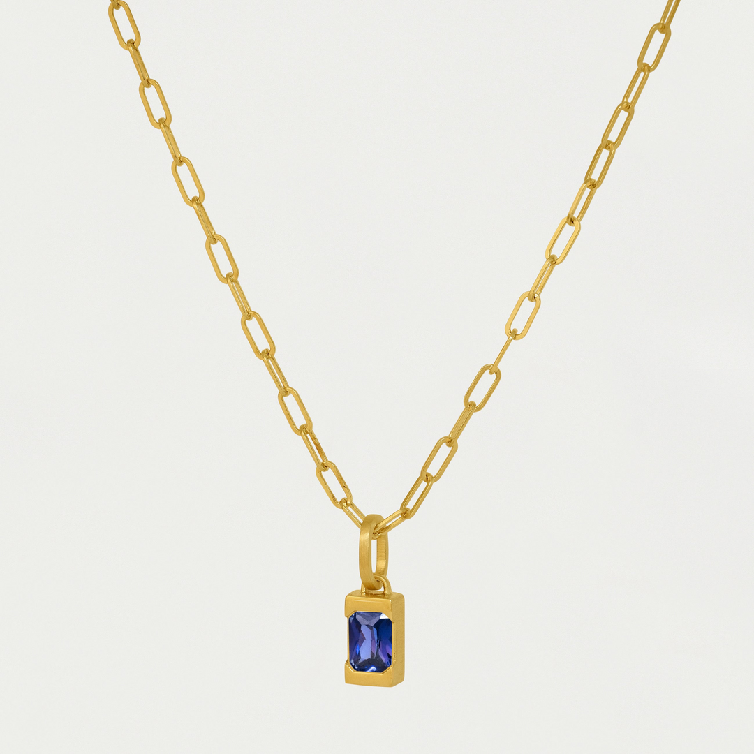 Add some color to your necklace game with a baguette gemstone that represents your birth month (or mood!). Featuring a minimalist setting and a modern paperclip chain, it's a versatile piece with endless styling potential.