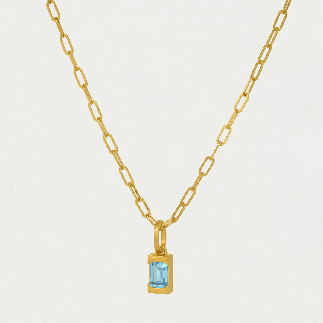 BAGUETTE BIRTHSTONE PENDANT-MARCH-AQUAMARINE/GOLD - Kingfisher Road - Online Boutique