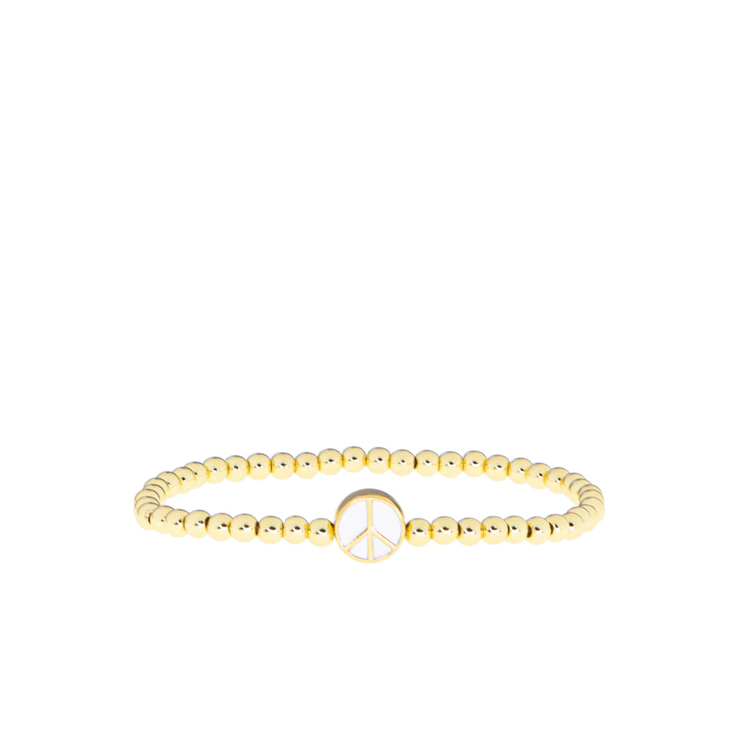 BEADED BRACELET WITH PEACE SIGN-WHITE
