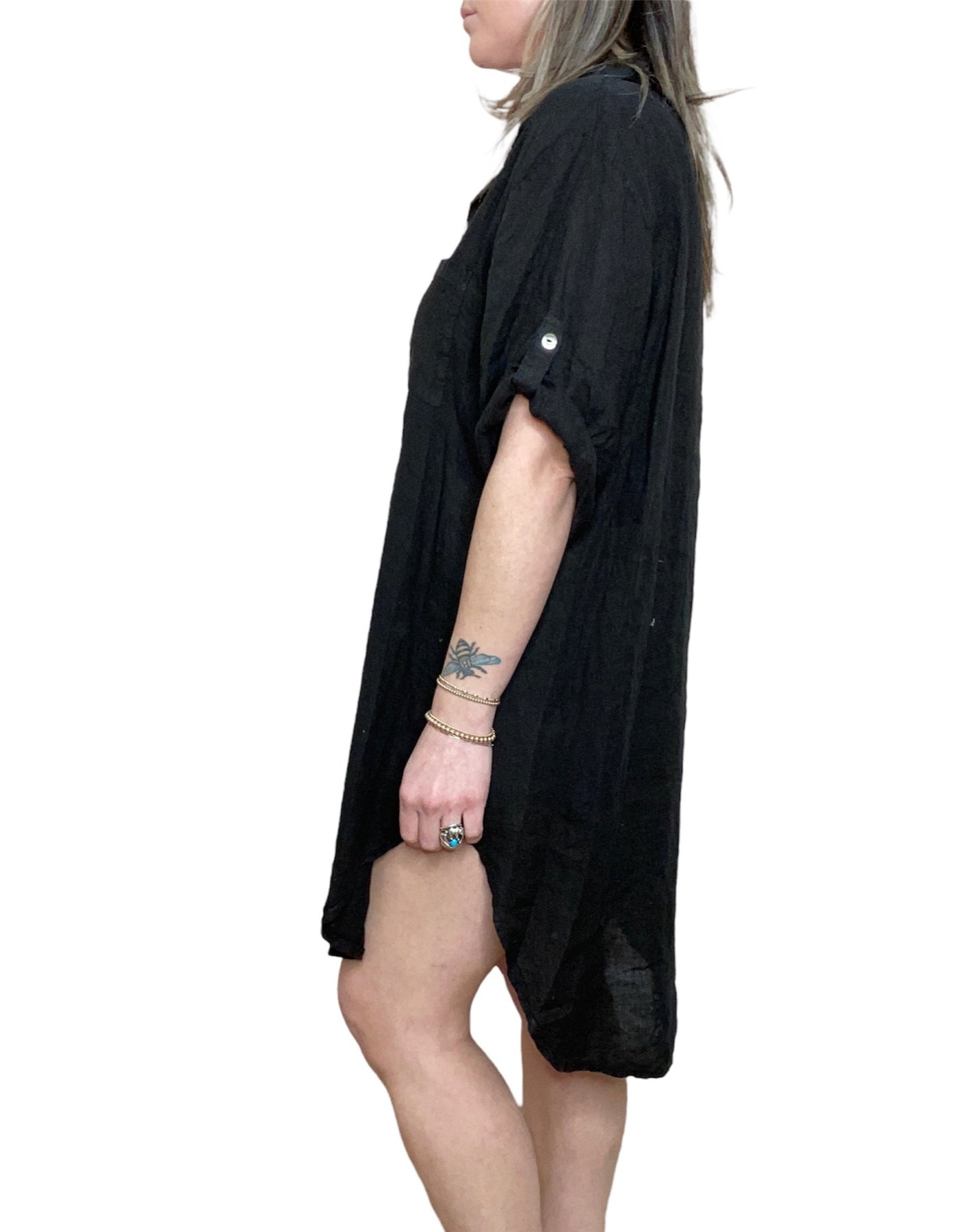 LINEN BUTTON DOWN SHIRT DRESS BLACK