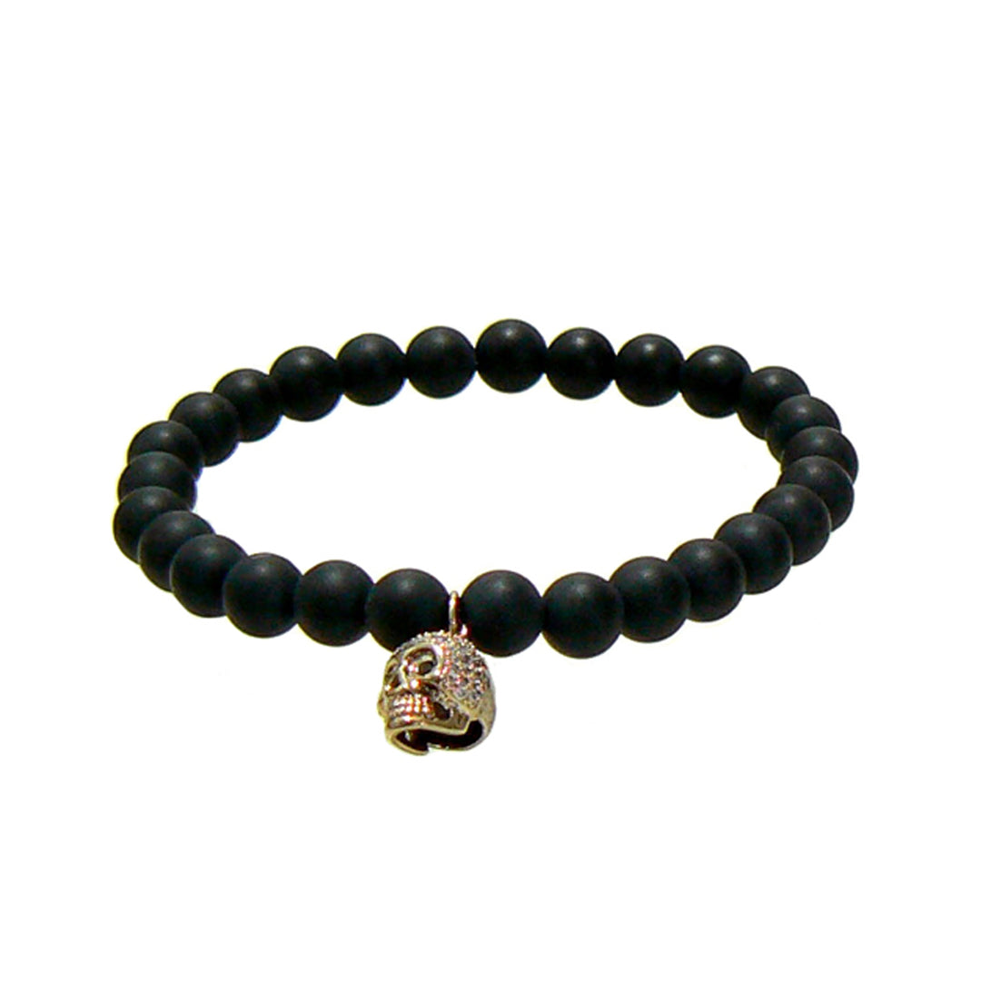 BLACK ONYX SKULL BEADED BRACELET-GOLD