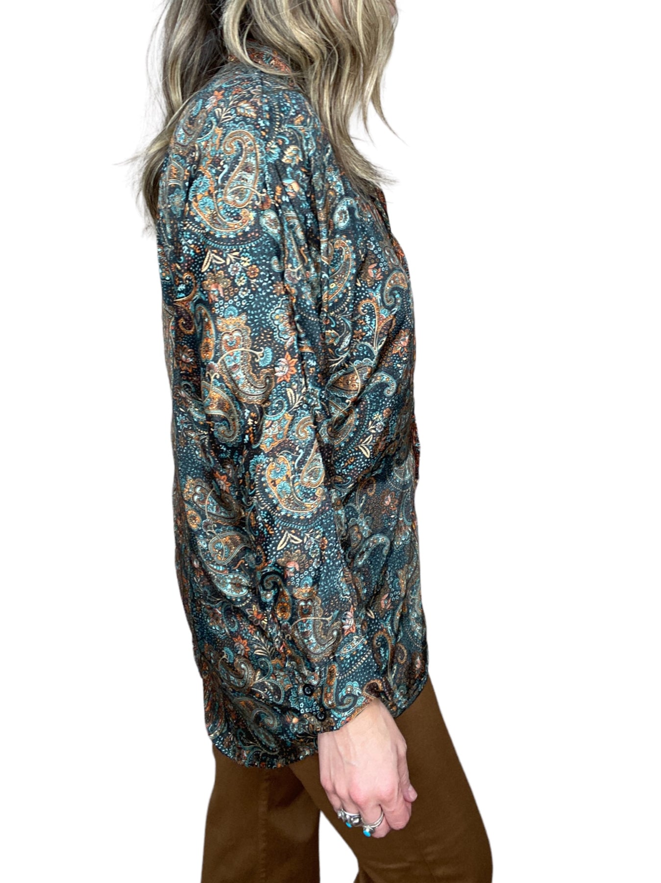 BLACK PRINT SILKY BUTTON DOWN  SHIRT - Kingfisher Road - Online Boutique