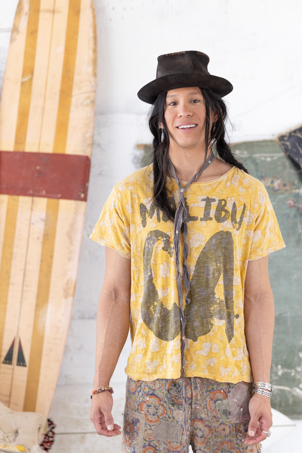 Hand-Block Print flowers upon the yellow glow of California sunshine, the Malibu CA Tee brings the Malibu state of mind to whatever state you’re in.