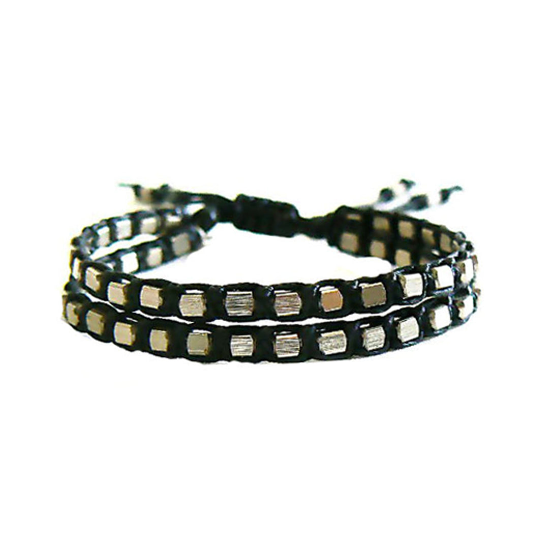 BRAIDED CORD W/ DOUBLE NICKEL BEADS BRACELET