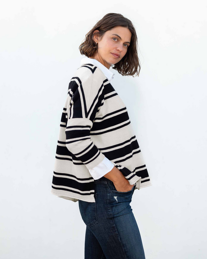 Wear it the way you like it, this V-Neck Sweater is undeniably a go-to in any season. Whether you’re on the move, in need of a quick change or looking to dress effortlessly chic, this is the sweater. Layered and worn on its own, this V-neck sweater is enough to be “the outfit“ and understated enough to never “overdo it.” With the signature Catalina split sides and contoured shoulders into a tapered sleeve, you will find that this is truly a year-round closet hero.