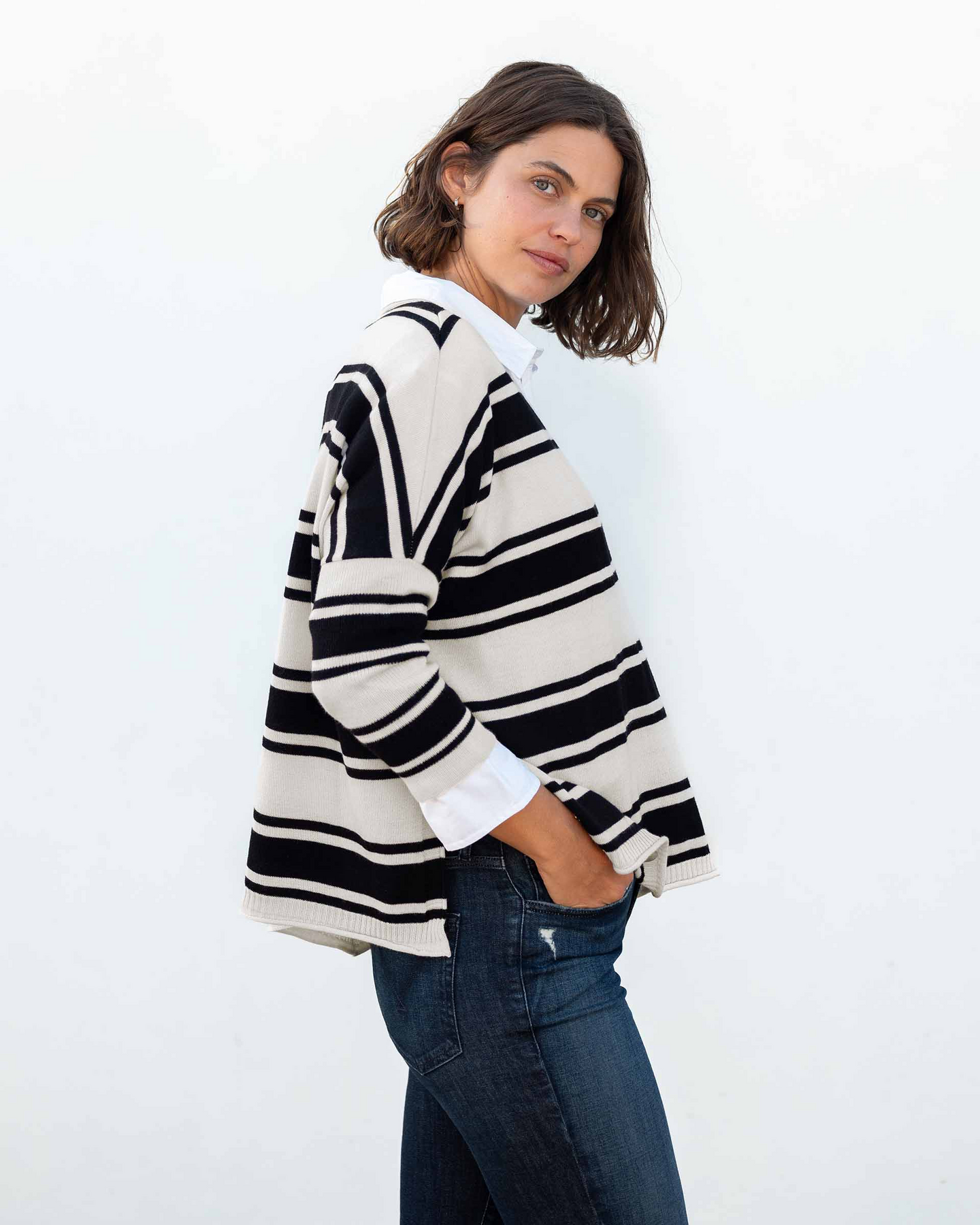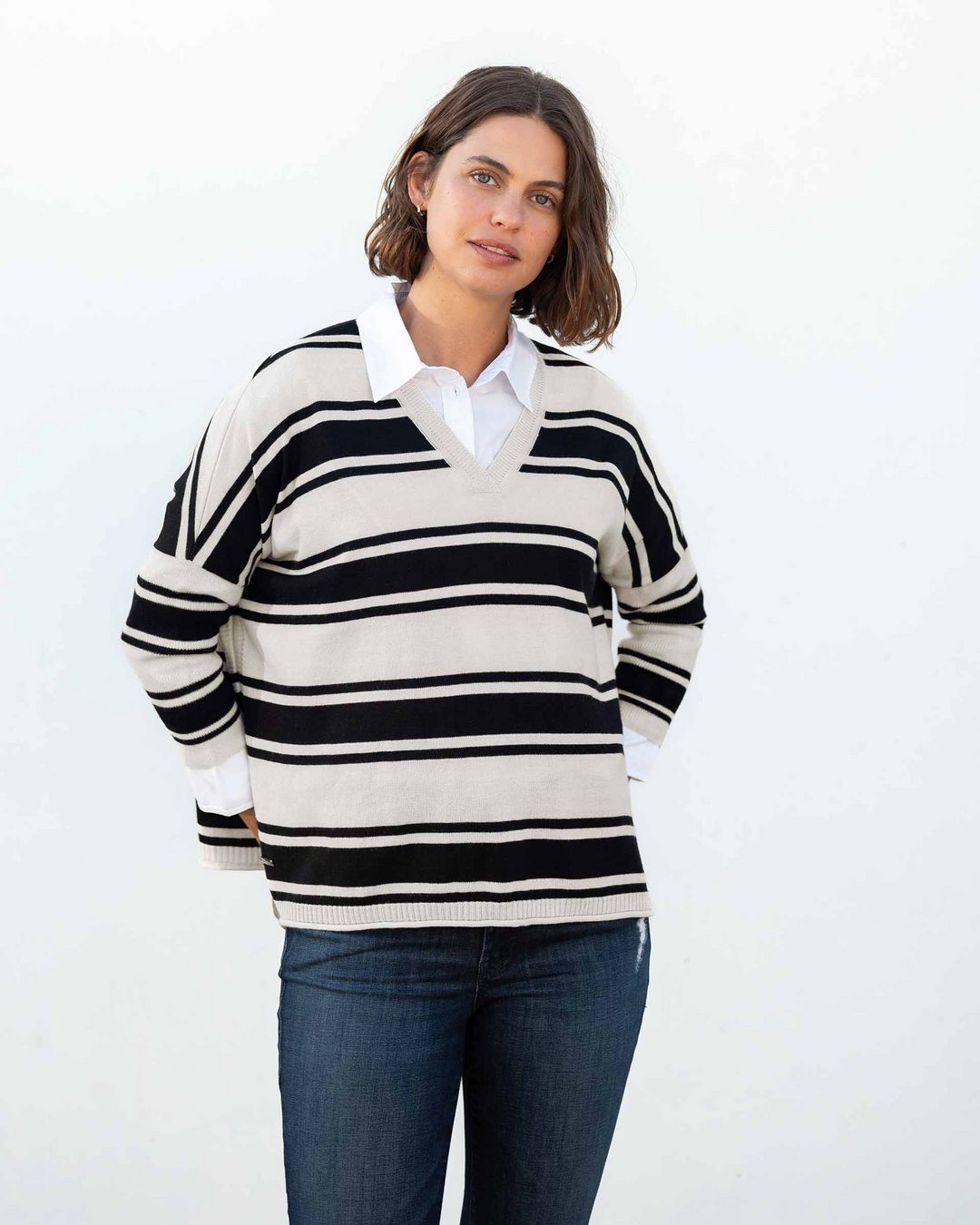 CATALINA V-NECK SWEATER-BLACK/SAND