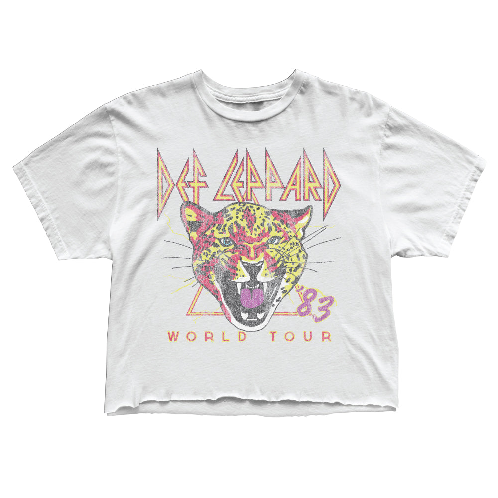 Unleash your inner rockstar with the Def Leppard cut off tee in crisp white. The edgy crew neck design adds an element of style to any look. Show off your love for Def Leppard while staying cool and comfortable. Get ready to rock on!