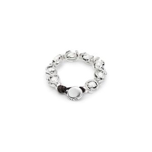 The Double Moon necklace is an exclusive design inspired by a classic, iconic UNOde50 piece. This short necklace features 19 pearls set in dual moon or semi-open orb shapes. The lobster clasp allows it to be adjusted to the desired length. It weighs 82 g. Handcrafted in Spain through a 100% artisan process using a silver-plated metal alloy. Wear this necklace with the rest of the pieces from the collection for a look that dazzles.
