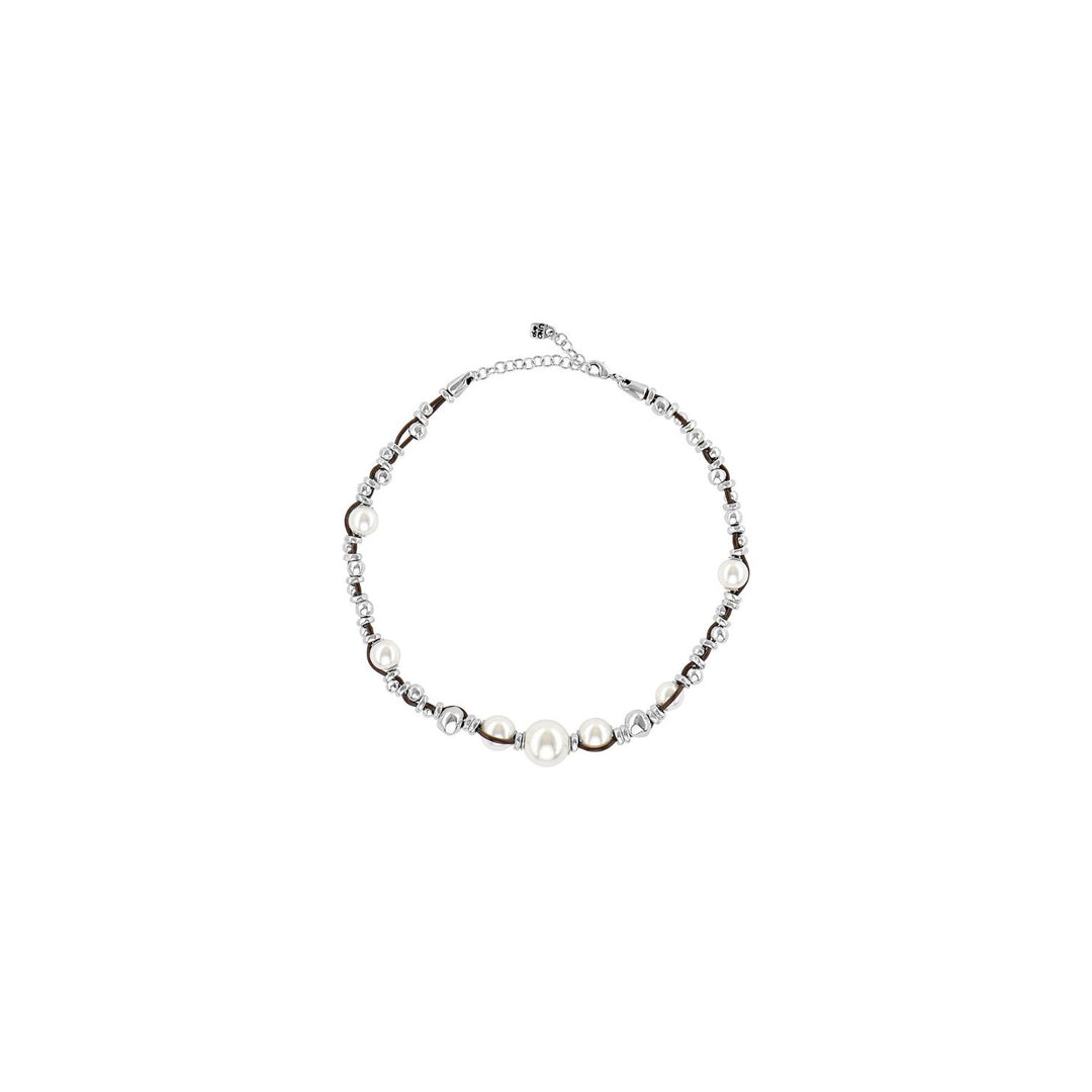A necklace inspired by the eroded stones that the sea gives us, bringing balance to your outfits with a groundbreaking style. Precious white pearls placed in a disorderly manner make up this necklace, 100% handcrafted, with endless beads of different sizes made of silver plated metal. It is a jewel made by UNOde50.
