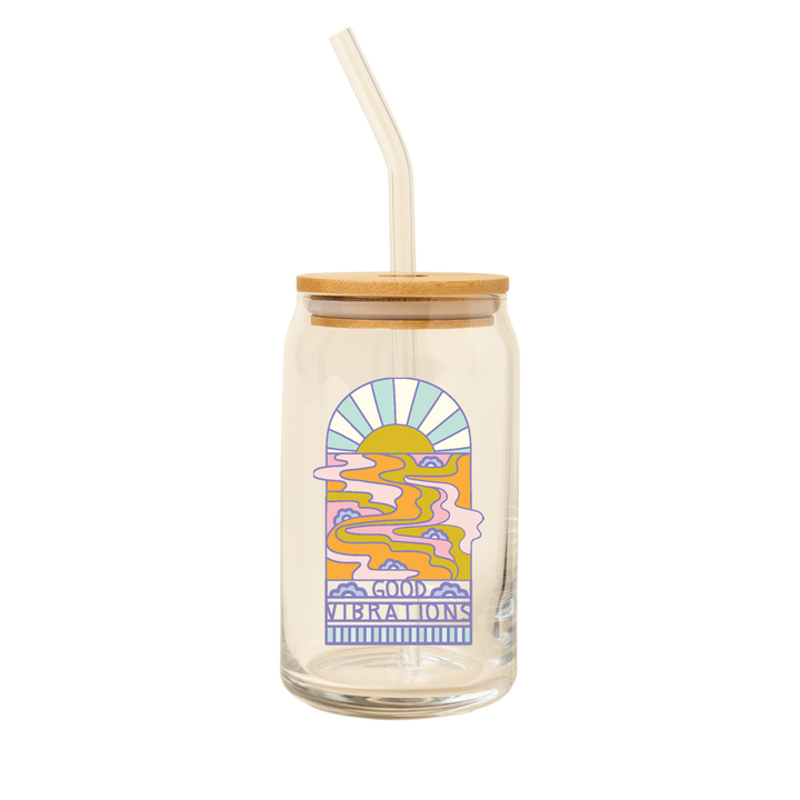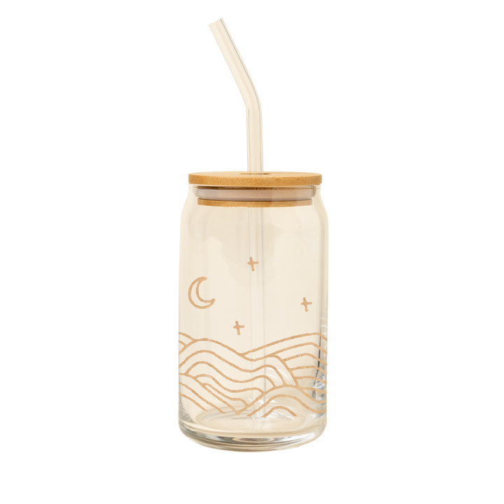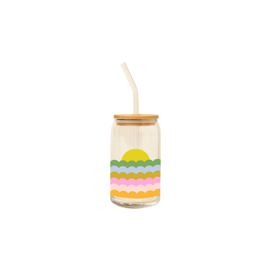 GLASS CAN WITH LID AND STRAW - Kingfisher Road - Online Boutique