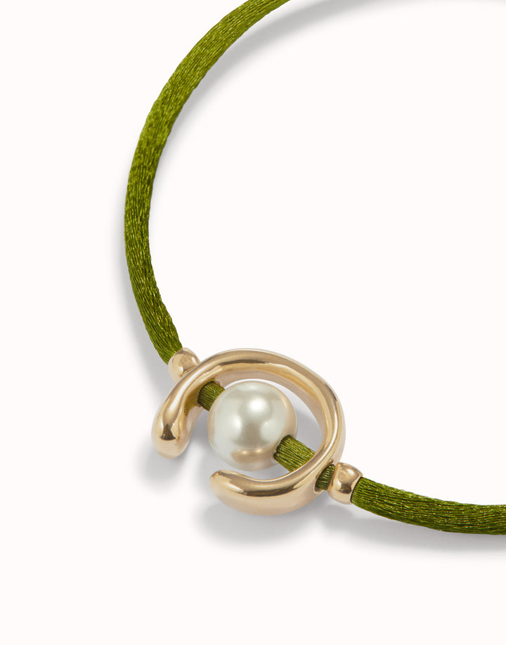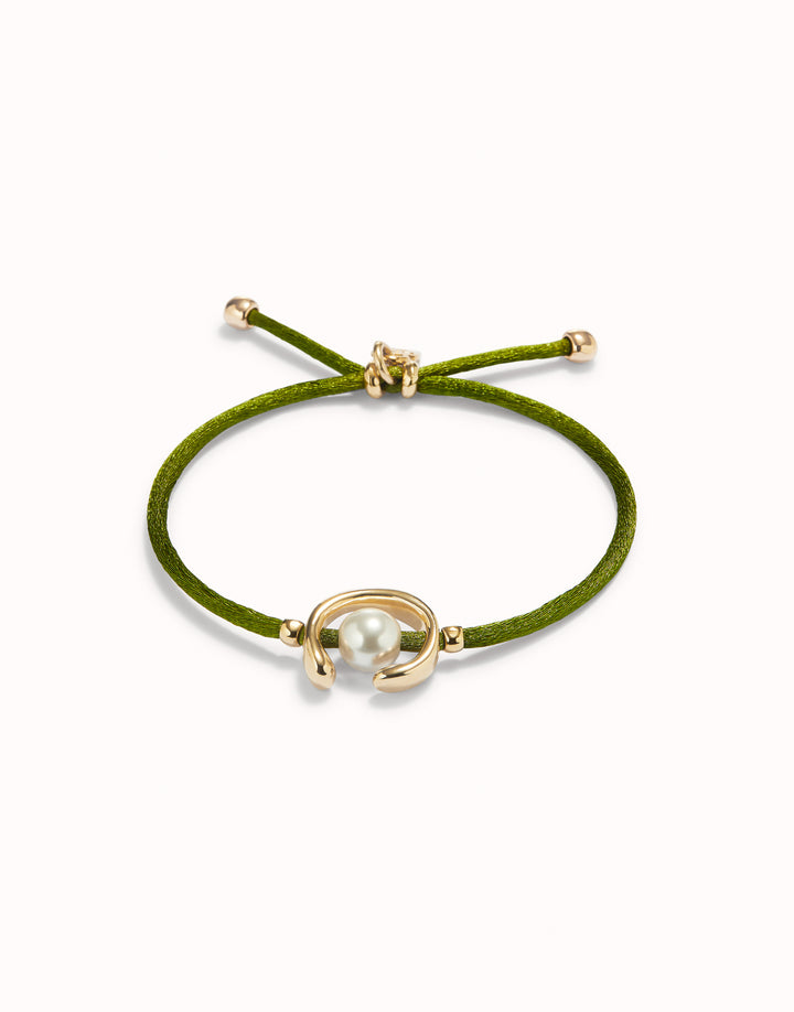 Olive mouse tail thread bracelet with shell pearl accessory.