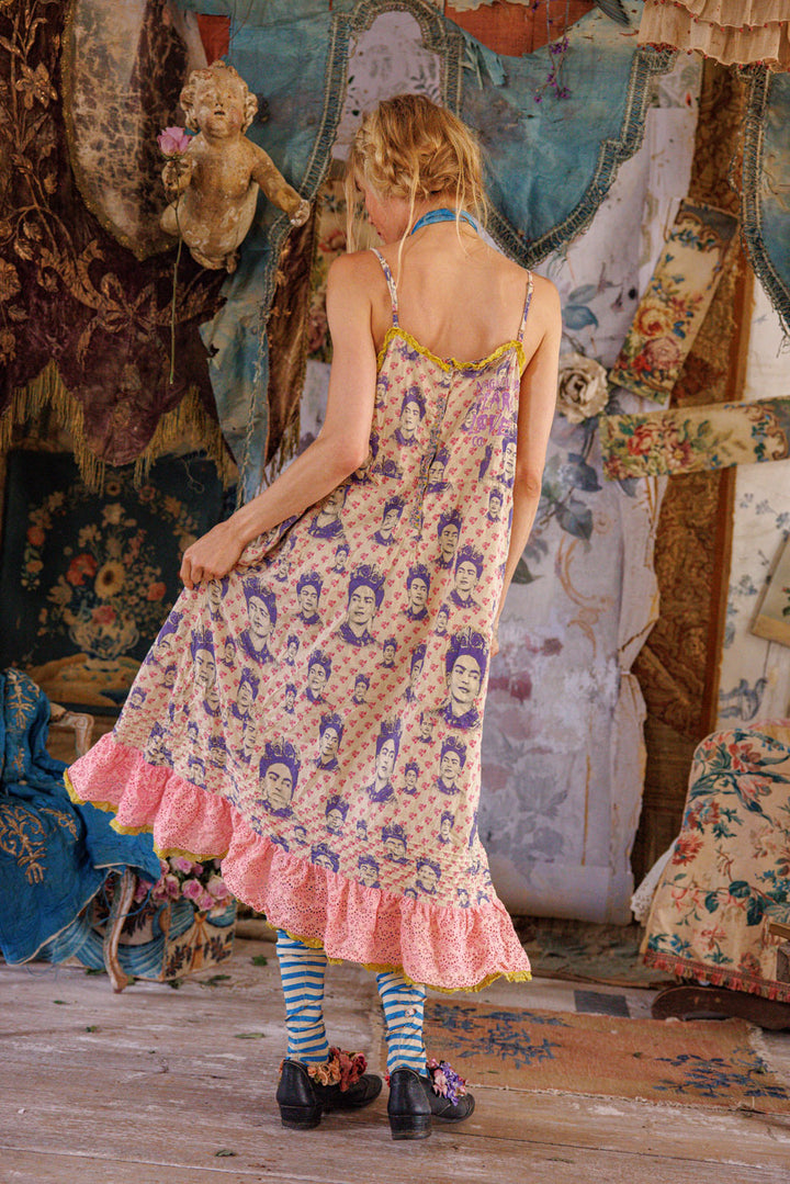 - All-Over Repeating Floral and Frida Kahlo Portraiture Print