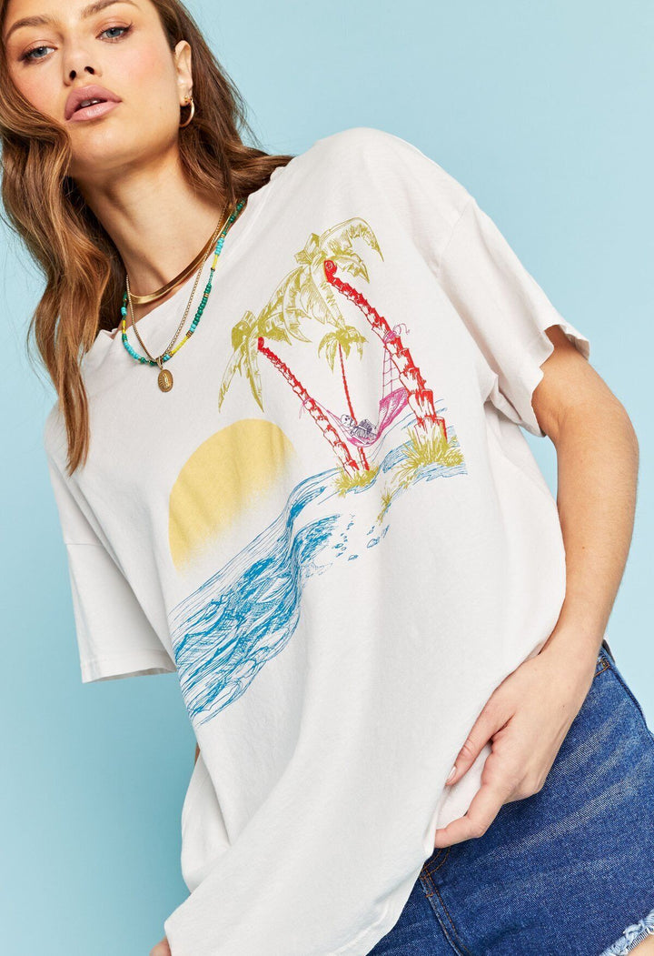 This tee is made from 100% cotton fabric. It has a skeleton on the front living it's best *after* life and features a boyfriend fit.