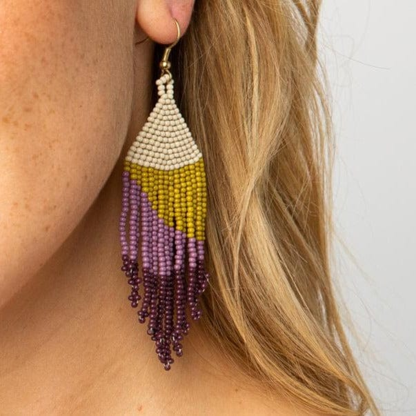 Part of our signature seed bead collection, these lilac ombre fringe earrings are handcrafted by artisans in India. They are sure to add an effortlessly cool pop of color to any modern boho look.