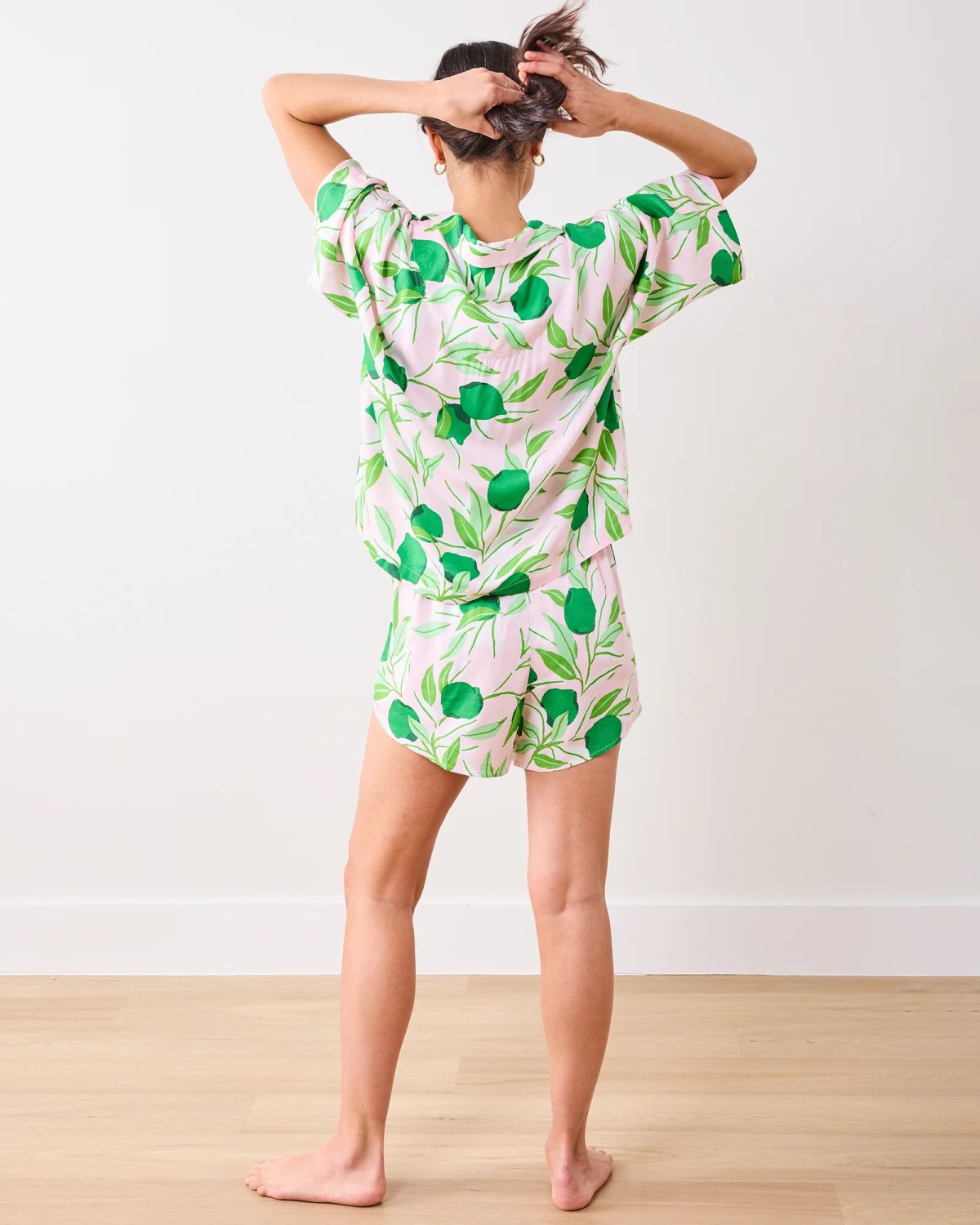 Feel like the main squeeze in these Lime Zest Eco Satin pajamas. A print back from the archives, this Printfresh original features gorgeous citrus on a Pink Salt backdrop for sweet dreams that feel zesty.