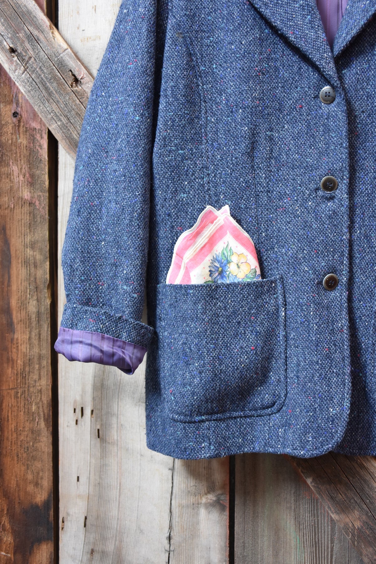 • Piece includes handpicked vintage hankie