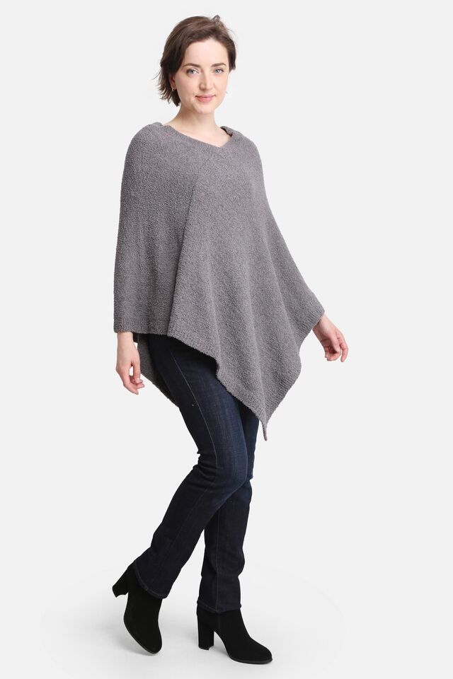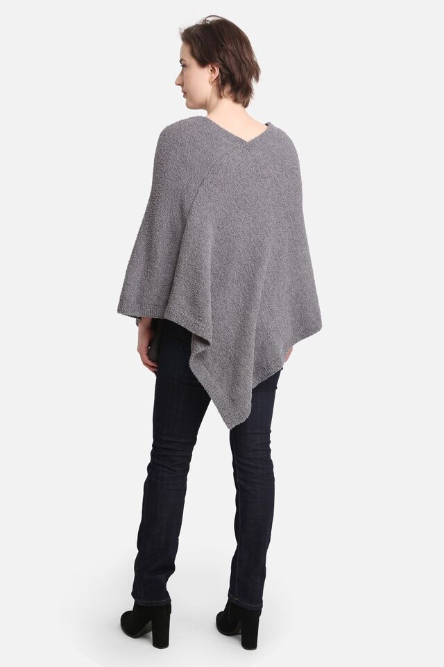 LUXE SOFT PONCHO WITH RIBBED EDGES-GRAY