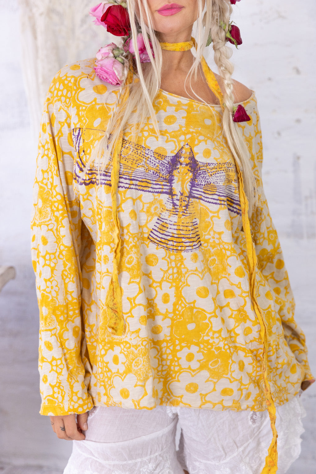 - Hand-Distressing (small holes) at Shoulders, Neckline & Hems