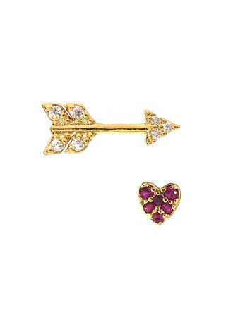 You'll love these adorable heart and arrow studs far too much to take them off! Made from gold-plated brass with CZ accents, these earrings measure approximately 4mm x 11mm and are sure to make an impression.