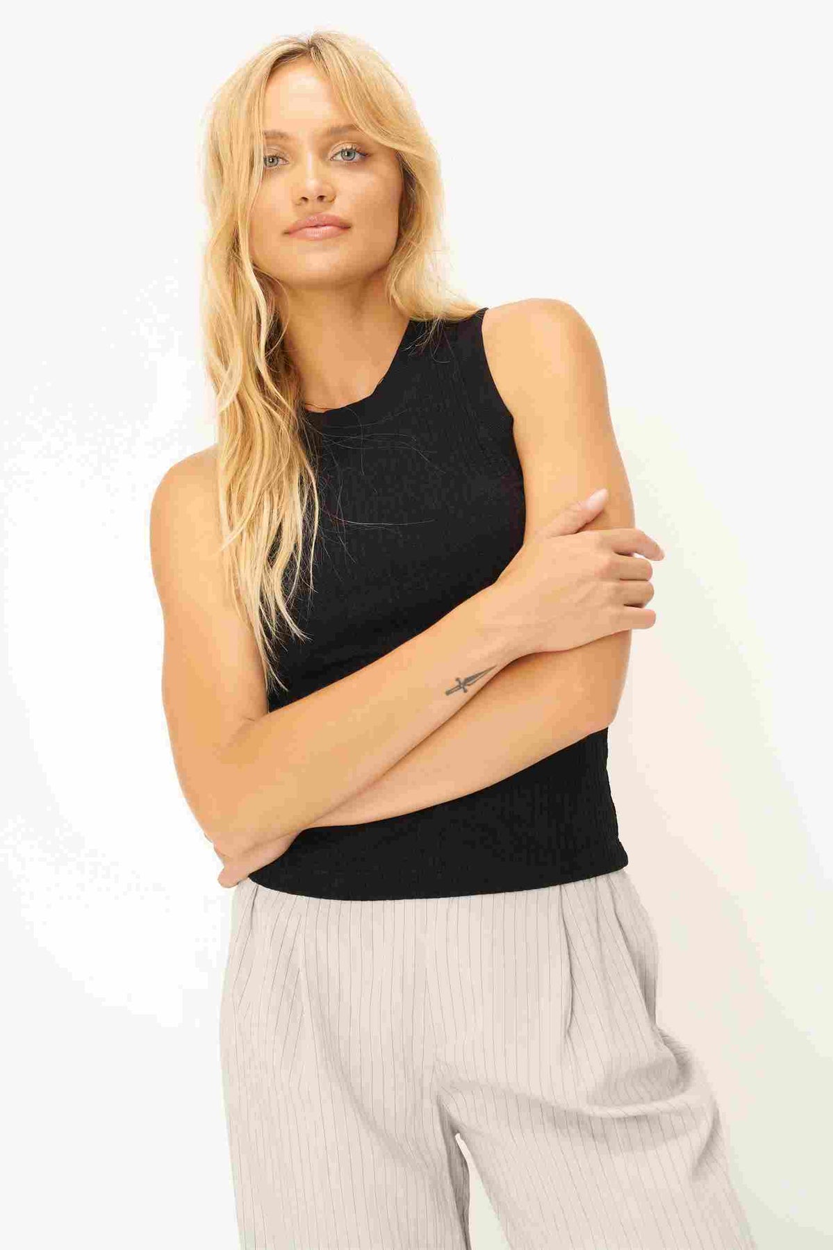 The Player Fitted Racerback Rib Tank is as comfortable as your favorite, basic tank with some added flattering touches. This style features a high crew neckline, slub ribbed fabric, racerback silhouette, and contrast rib edges. Flattering and versatile, expect this to be your new favorite piece for day, night, or anything in between.