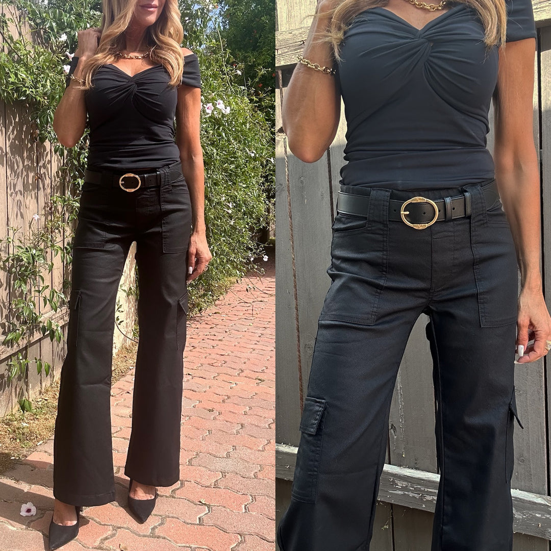 Bevy Flog has the look of a soft pant and the feel of a legging. The New Randi pant is a bootcut with a loose fit mid way of the pant to leg opening.